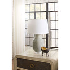 The Positano Lamp possesses a perfect balance of elegance and simplicity with its gracefully curved baluster-form silhouette. Crafted from ceramic, it features a variegated glaze, transparent in places, with a subtle crackle that adds both a depth and a texture to the piece. Resting on a clear acrylic base and topped with a sleek column finial, this lamp combines classic craftsmanship with modern sophistication.