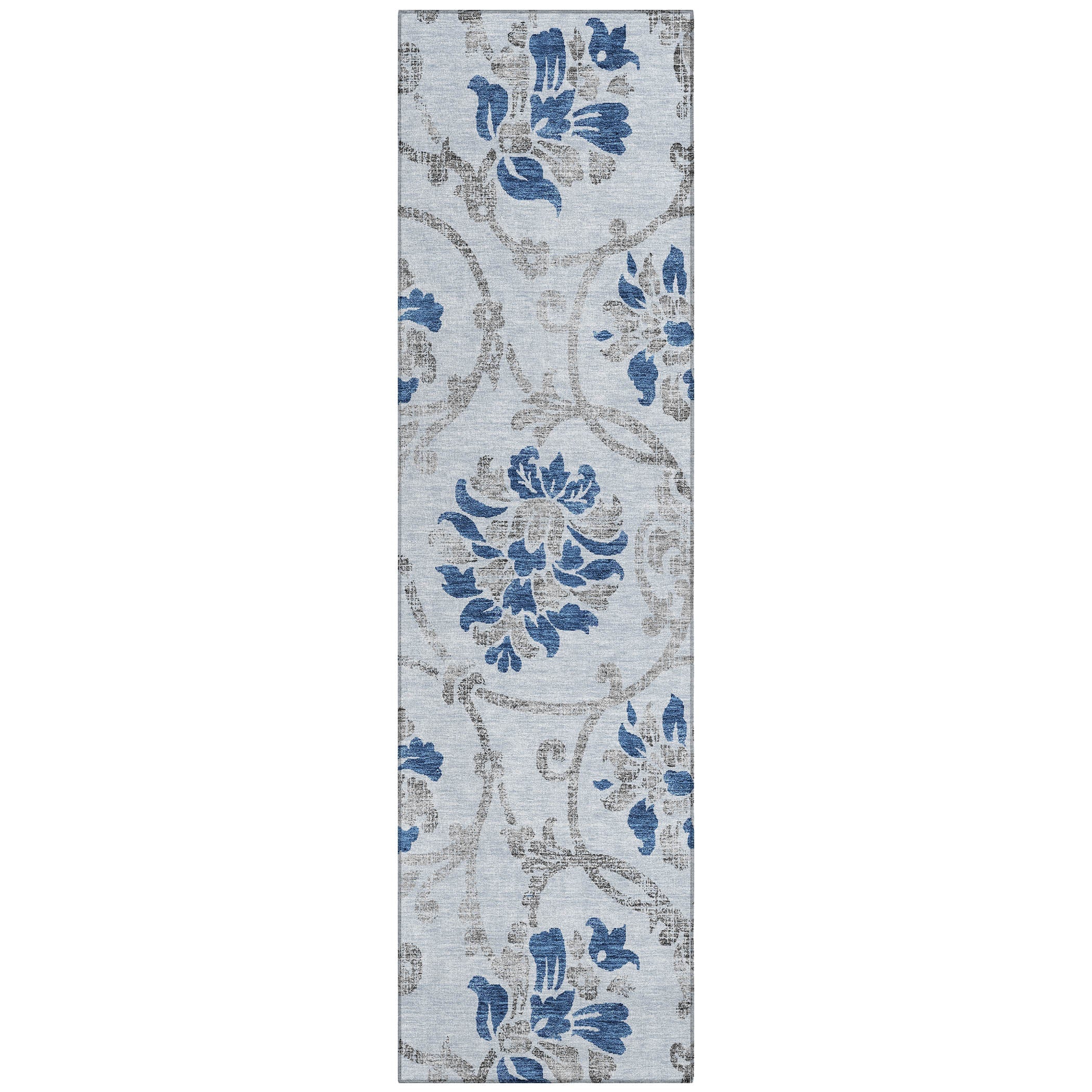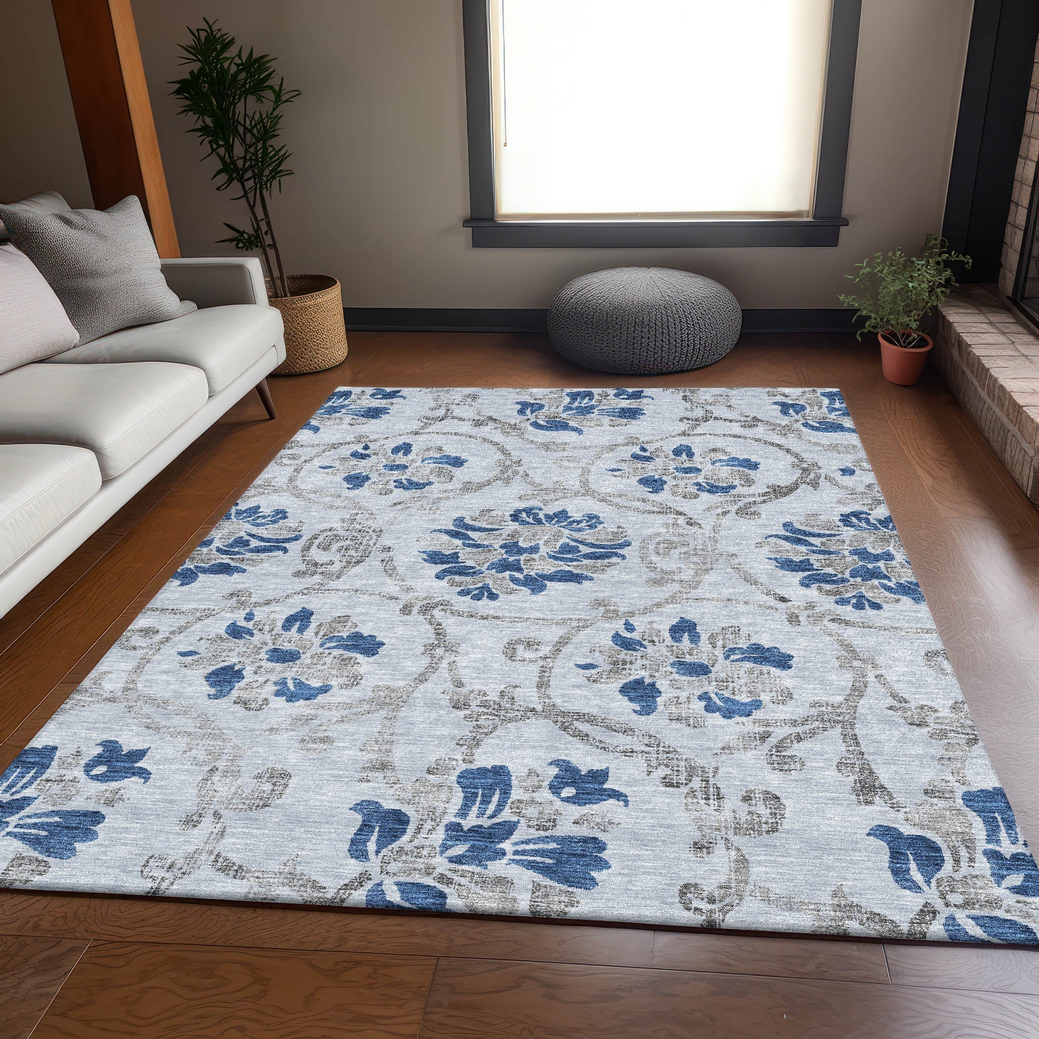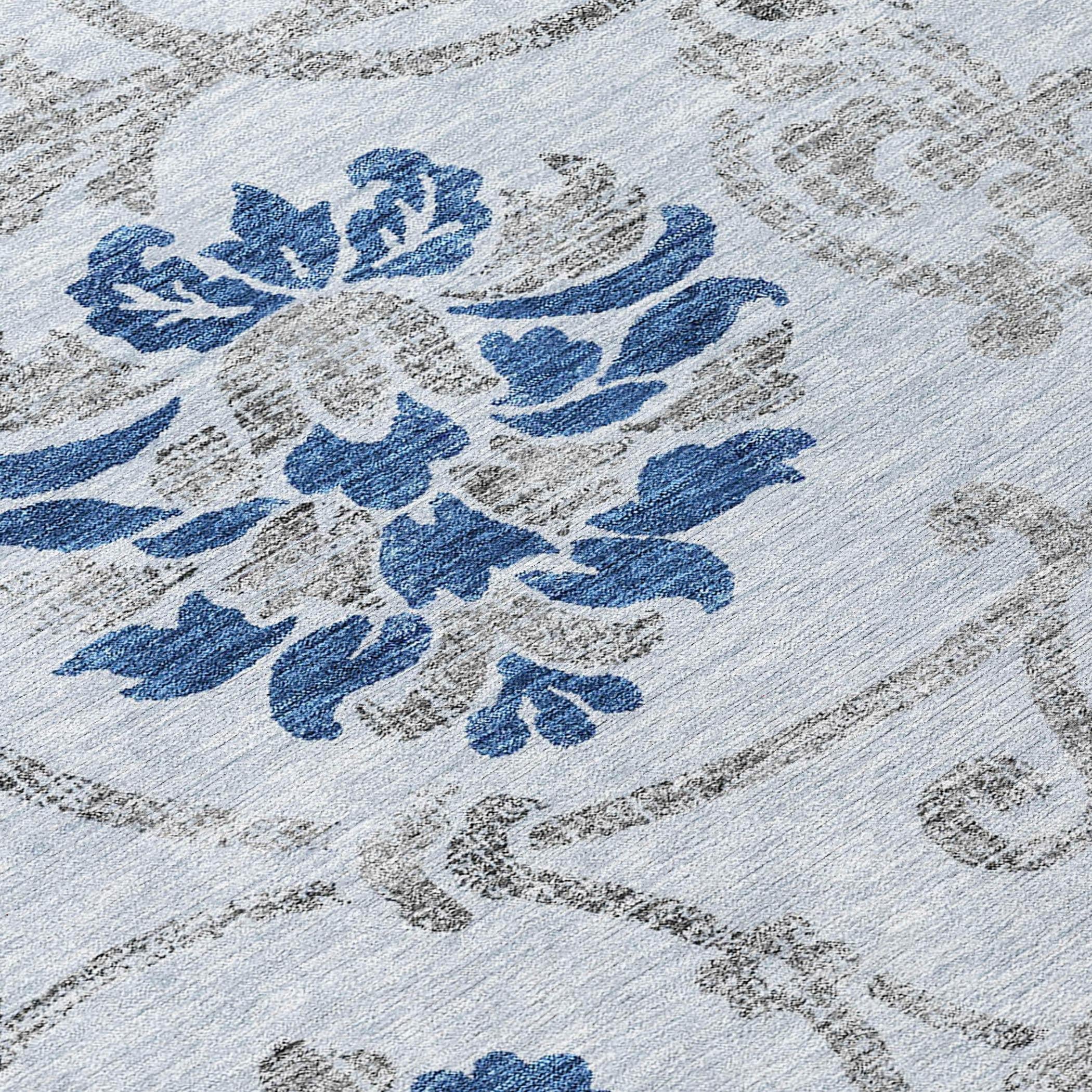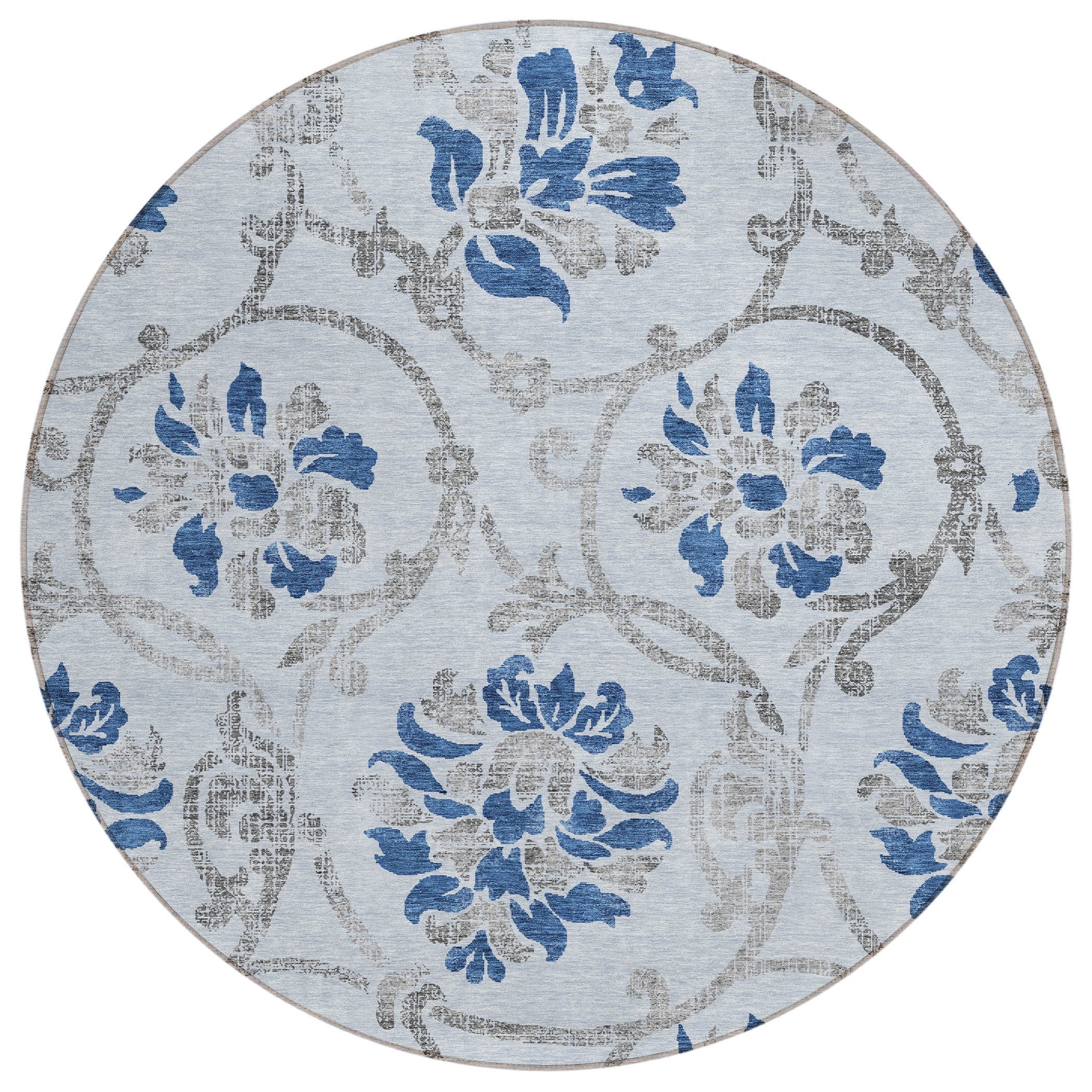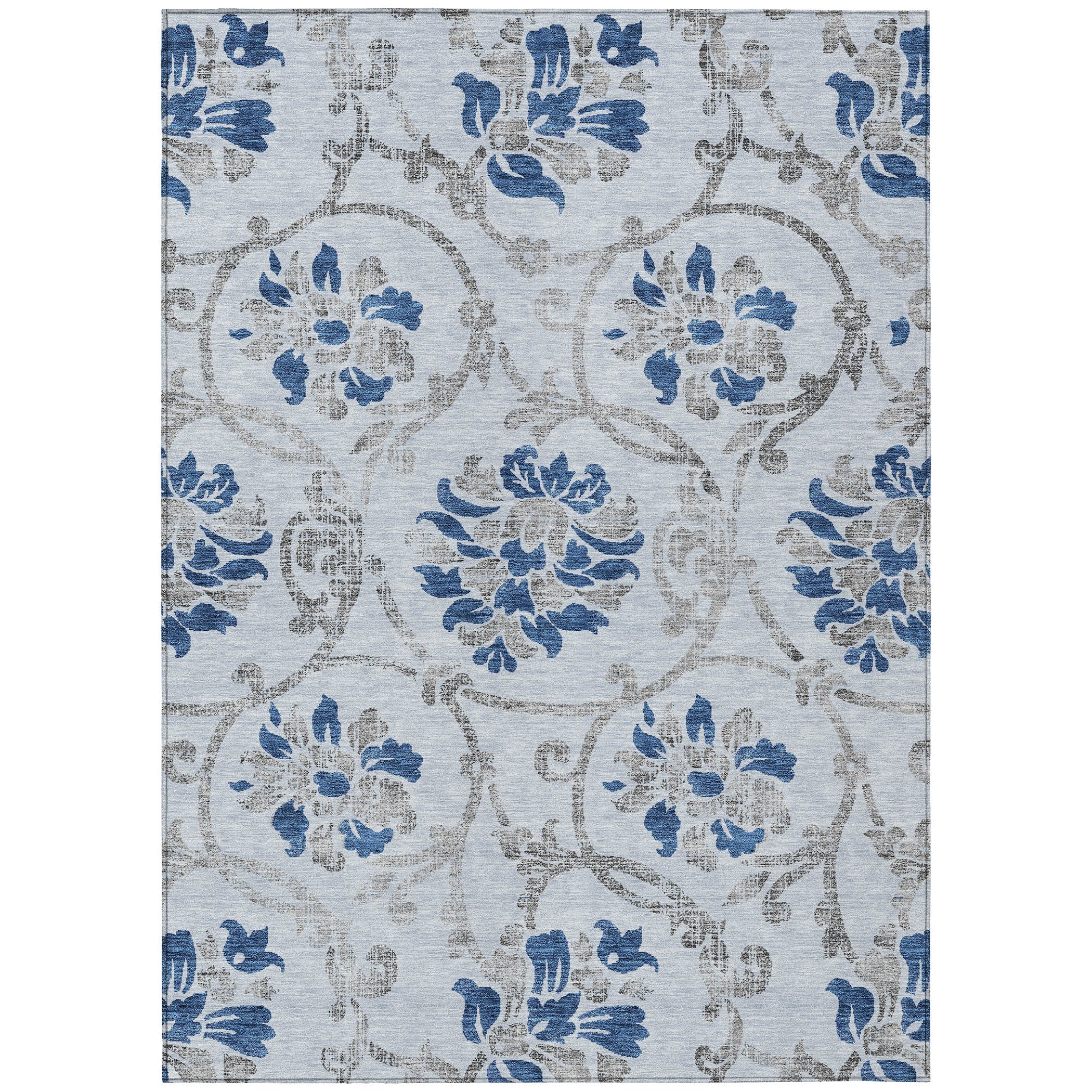 Chantille ACN762 Sky rug, a stunning piece that brings a touch of elegance to your living space. Adorned with large floral motifs and intricate vine and leaf patterns, this rug exudes a traditional charm that instantly uplifts any room's decor.