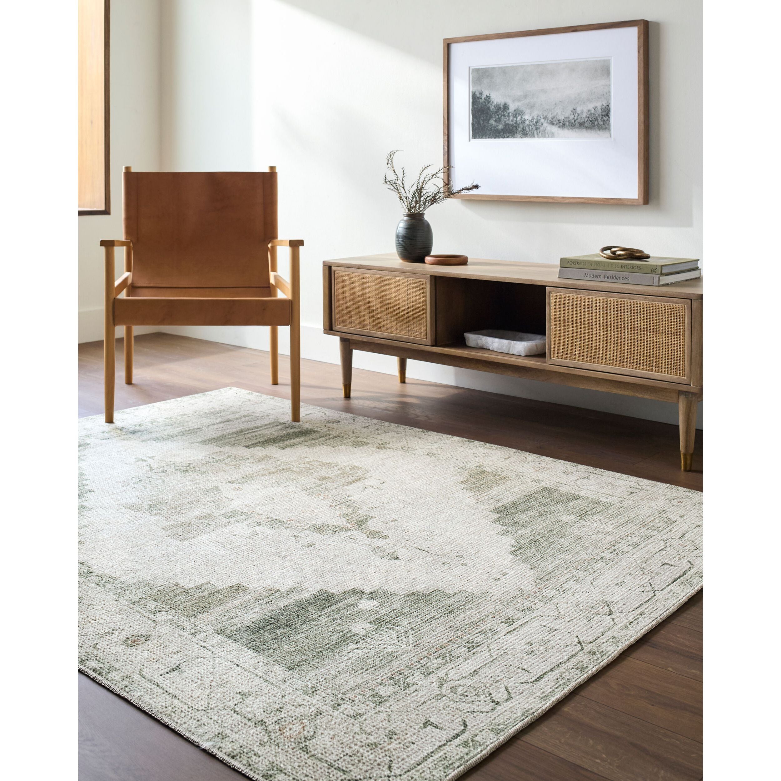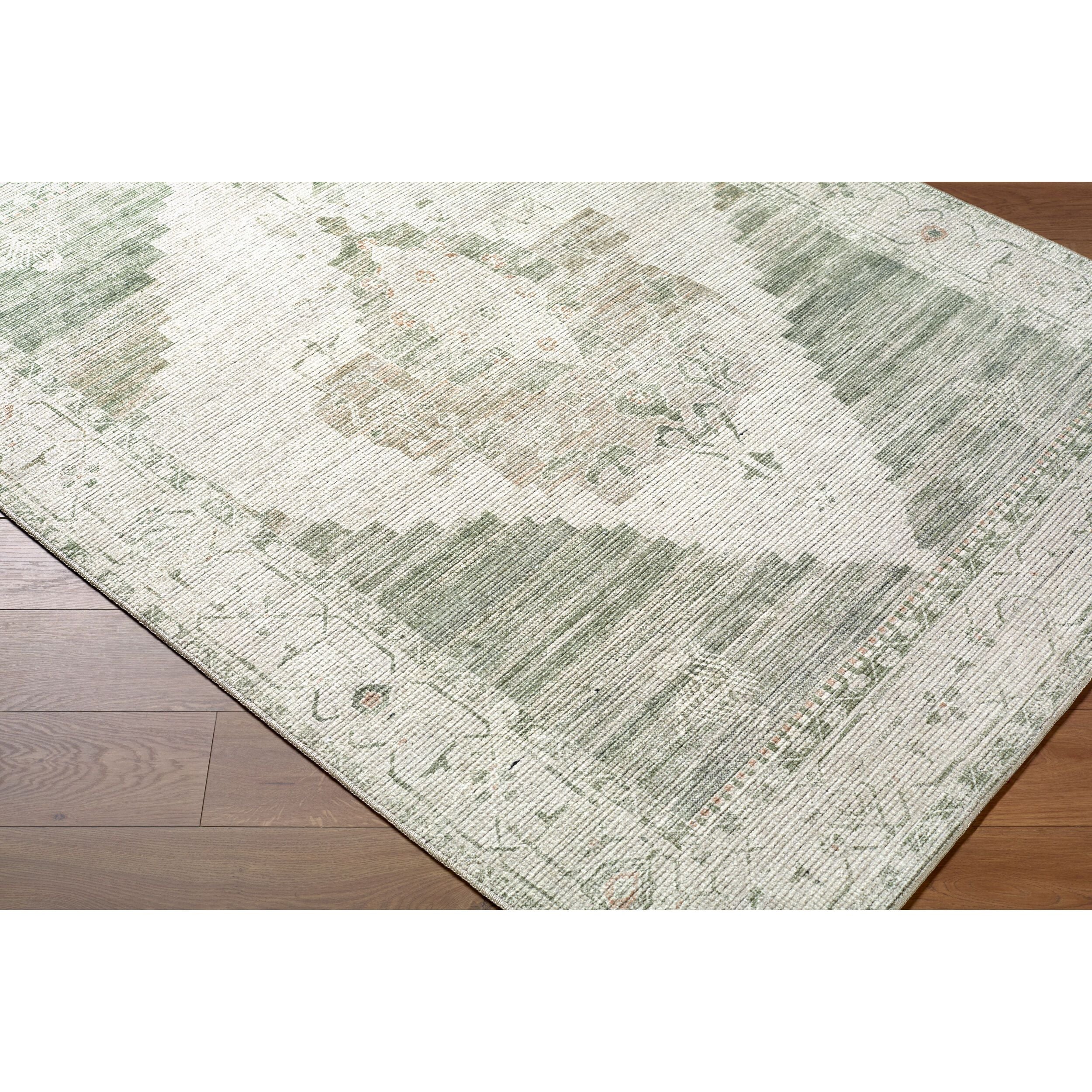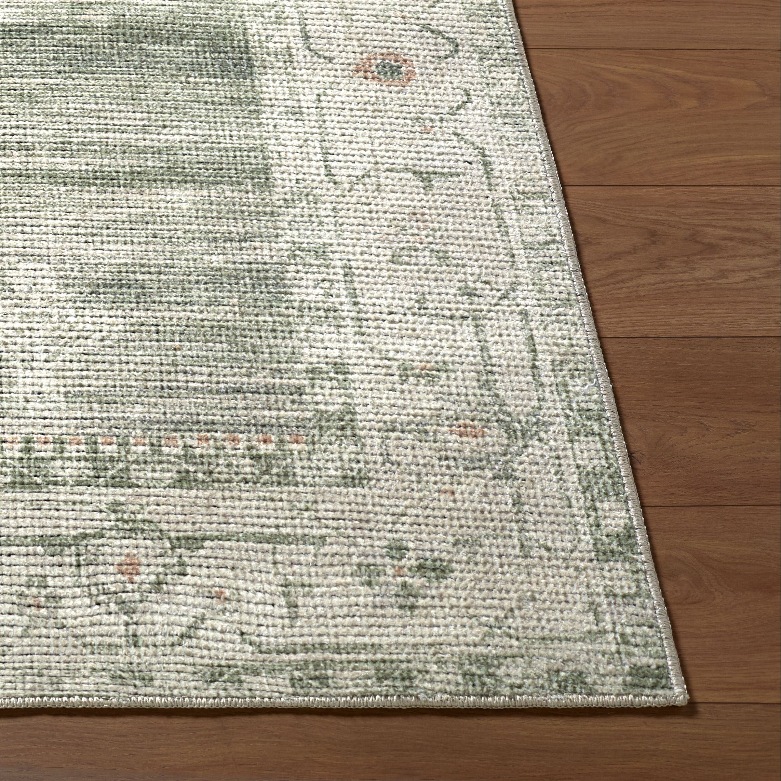 "First off, I love this rug .. the colours and the texture of the rug turned out to be exactly what I was hoping for - a very neutral-looking moss green and ivory background with a few tiny pale blue accents. Love the look!"