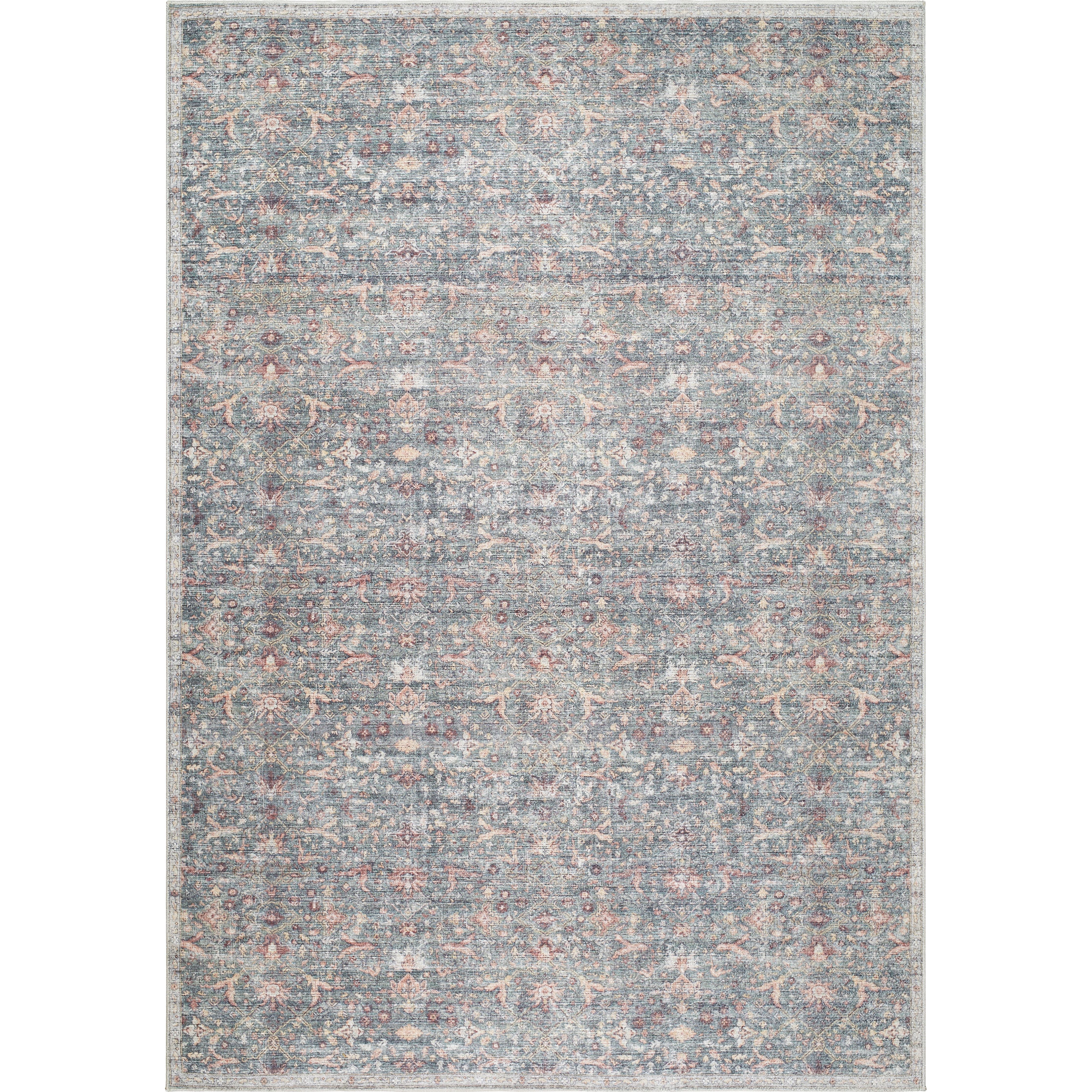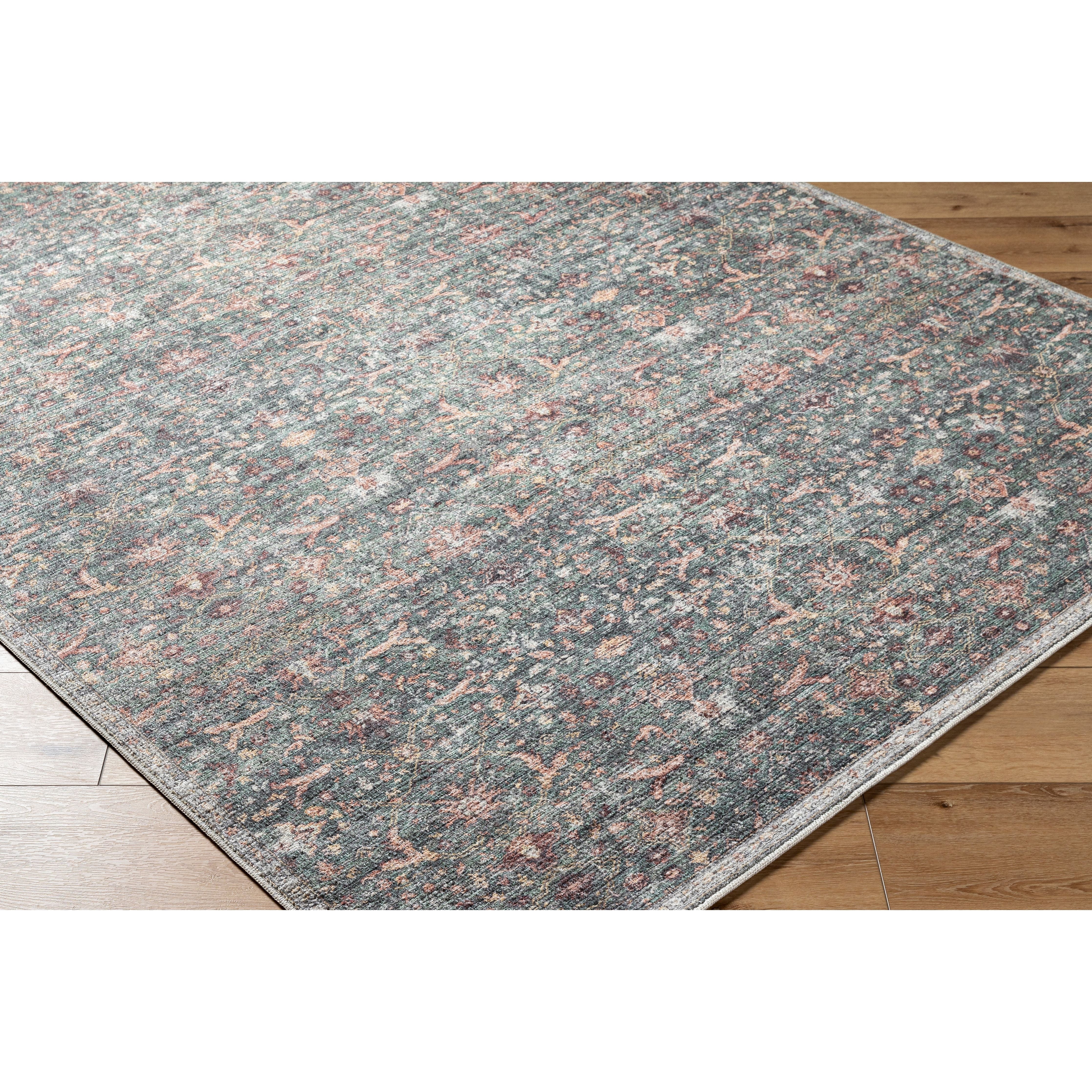 Introducing the Mary Collection, an exquisite area rug born from the unique collaboration between Vivir and Livabliss. This updated traditional piece beautifully marries intricate floral and foliate motifs in a symmetric arrangement, encapsulated in a vintage-inspired transitional style that adds depth and character to any room. Its machine-woven construction from polyester ensures durability and a medium pile height that stands up well in high-traffic areas, making it both practical and stylish. The cool gray and slate blue tones are elegantly accented with touches of mocha and wheat, creating a serene yet sophisticated palette perfect for various decors. Crafted in Turkey, this rug features fringes that add an extra layer of elegance to its design. For longevity and comfort, the use of a rug pad is recommended, while spot cleaning with mild detergent takes care of any spills or stains, ensuring your area rug remains a centerpiece in your home for years to come.