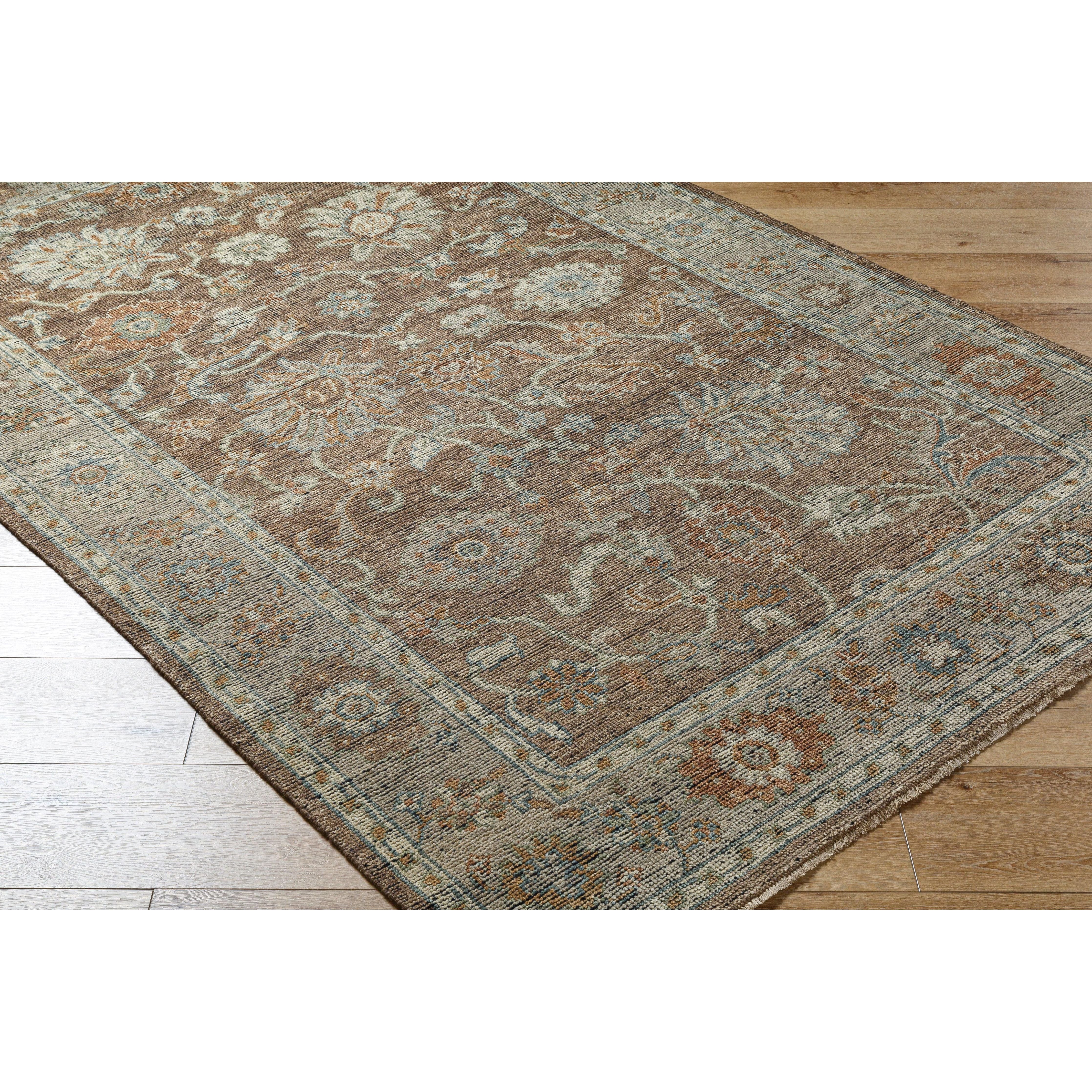 "First off, I love this rug .. the colours and the texture of the rug turned out to be exactly what I was hoping for - a very neutral-looking moss green and ivory background with a few tiny pale blue accents. Love the look!"