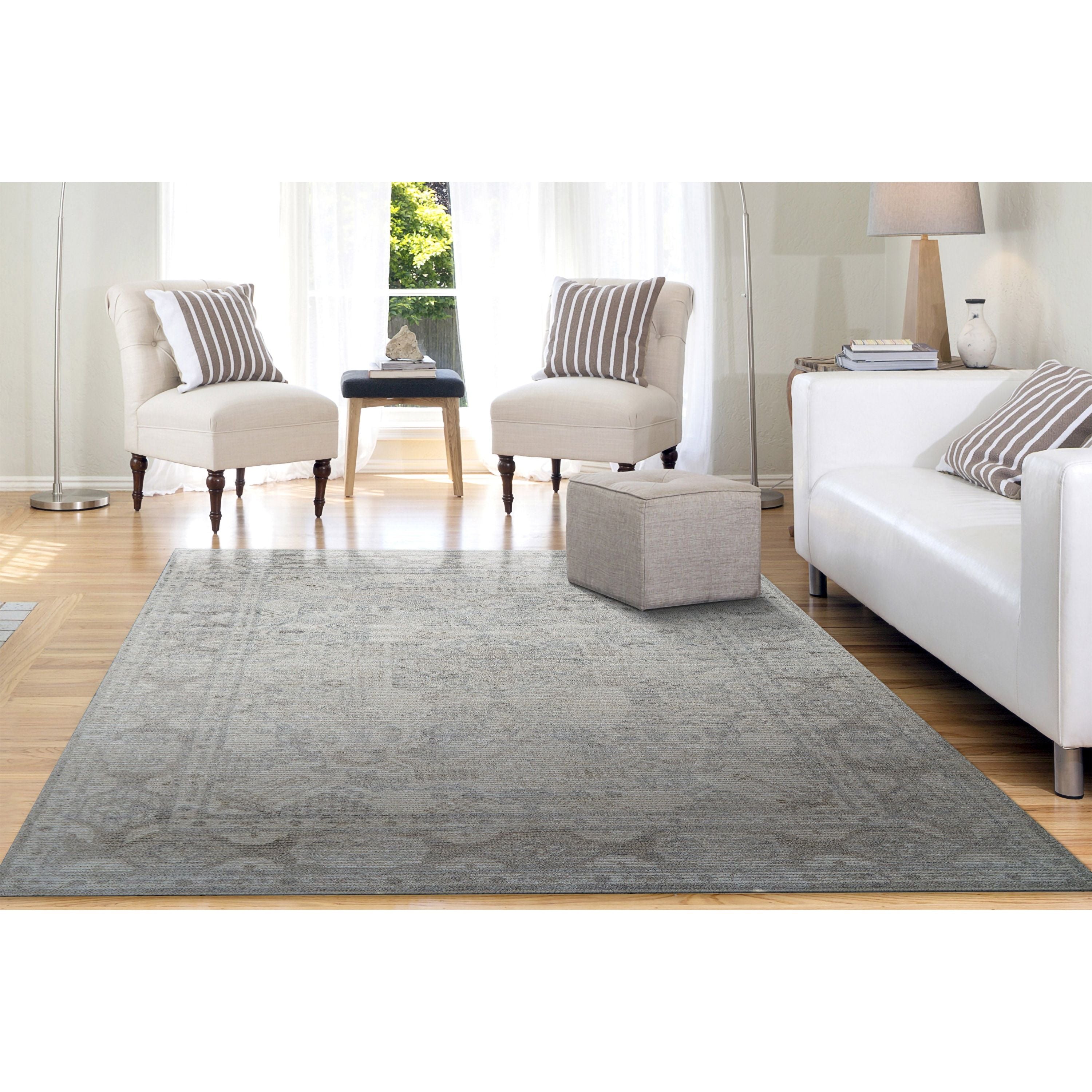 Experience the perfect blend of tradition and luxury with our handloomed Stefano collection, crafted by skilled artisans in India. Featuring an intricate traditional design, this rug showcases a serene palette of cool beige and green, soft grey, and gentle blue tones. The viscose adds a silky texture and subtle shimmer, bringing a sense of refined elegance to any space.