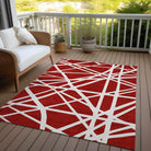 Our area rug blends linear motifs with a geometric style, creating a transitional look that seamlessly bridges classic and contemporary interiors. This versatile piece is UV stabilized to withstand varying climates, ultra-thin for simple setup, machine-washable for low-maintenance care, and designed to be durable and safe for both family and pets.