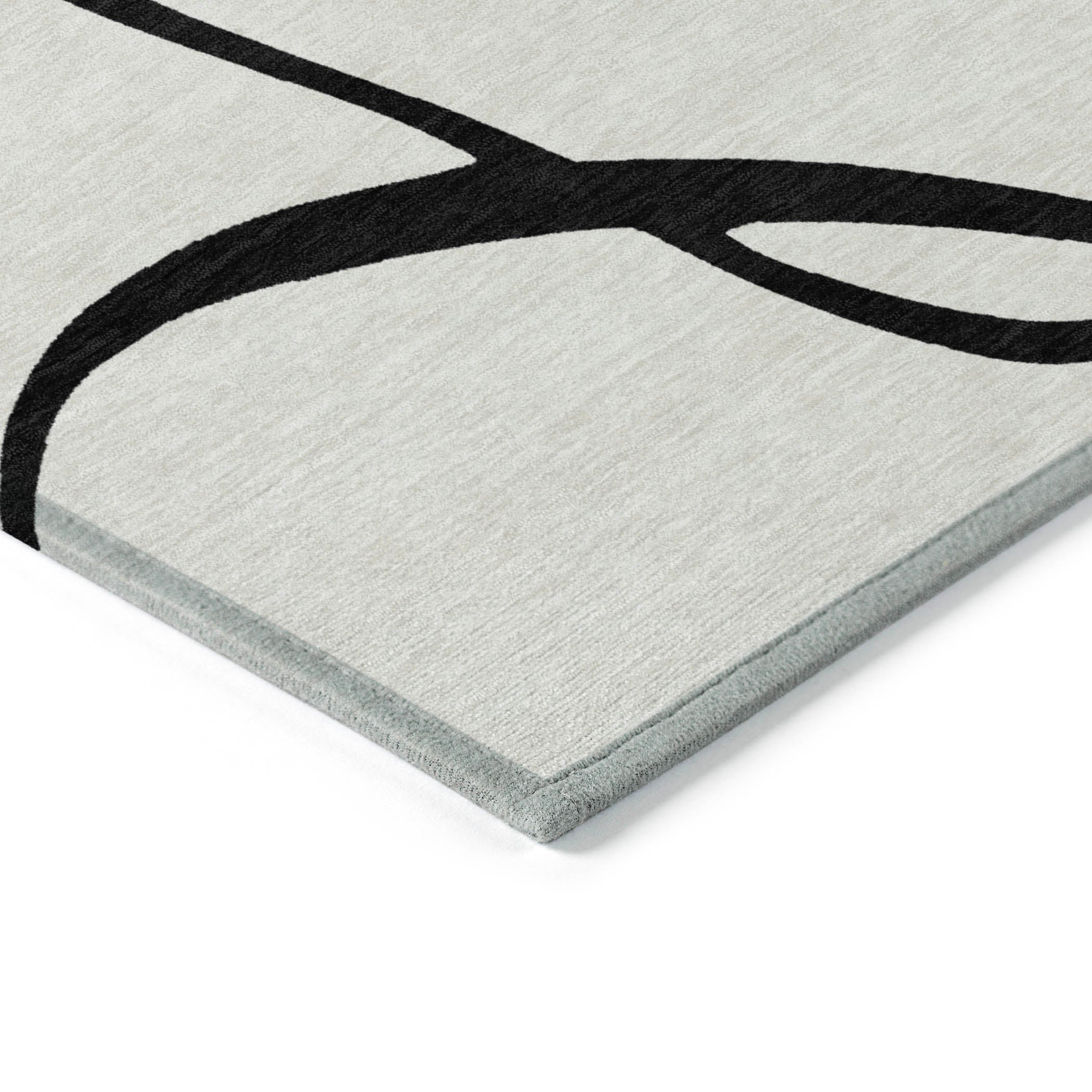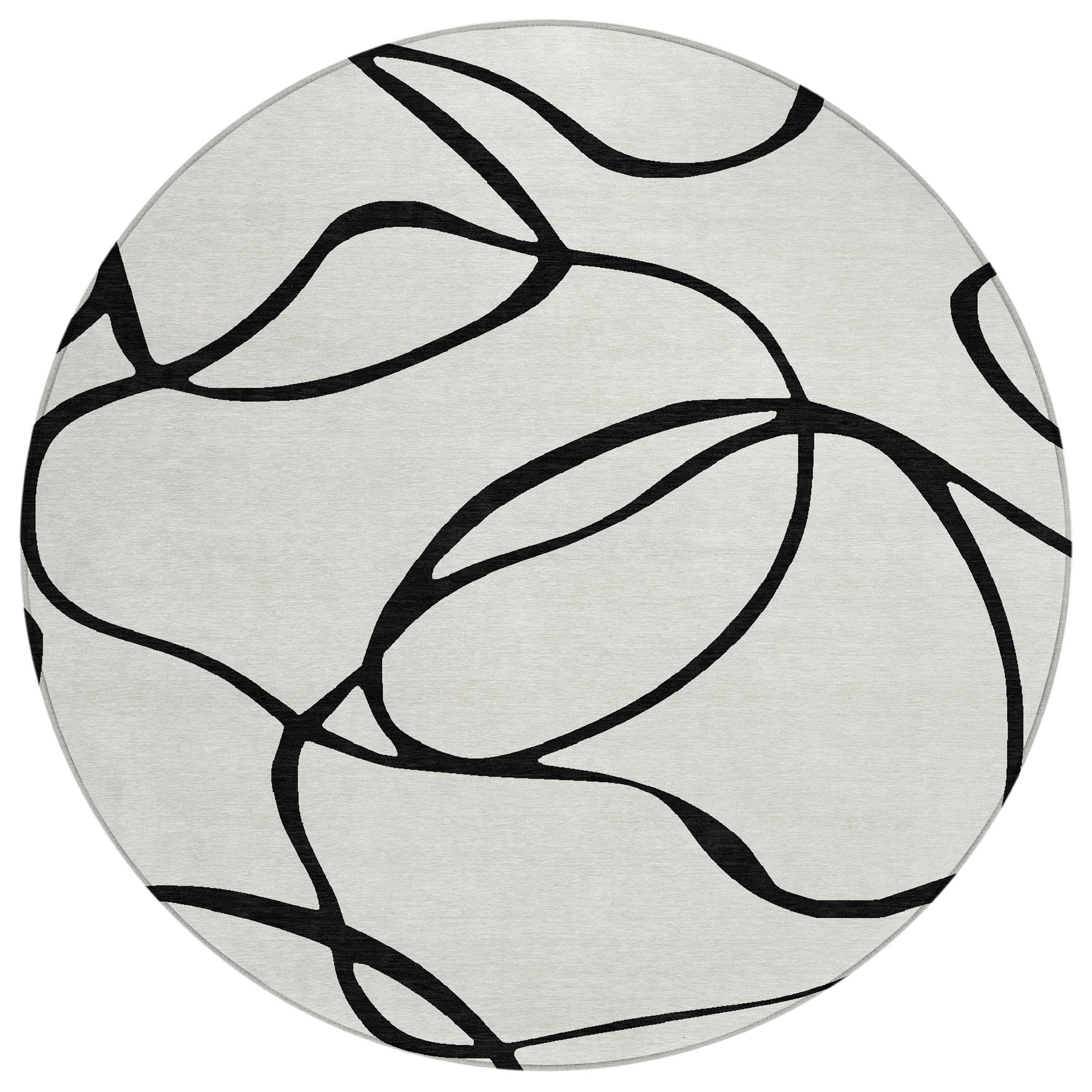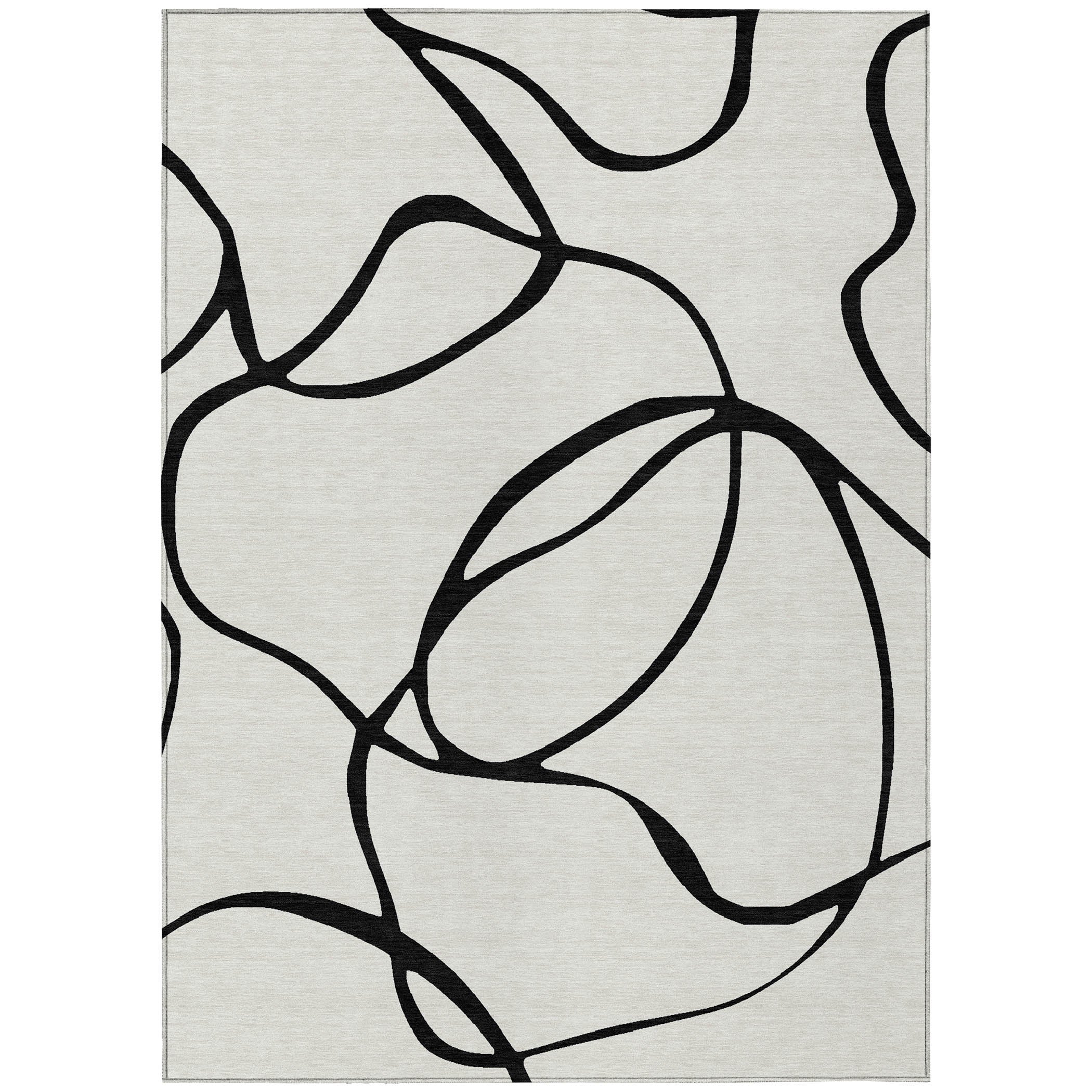 Experience the fluid beauty of our area rug, which captivates with its random thin ribbon patterns and free-style swirls. This transitional piece easily complements your existing decor, making it a versatile addition to any space. Crafted for convenience, the rug is UV stabilized for use anywhere around your home, boasts an ultra-thin design for easy placement, and is machine-washable, perfect for households with kids and pets.