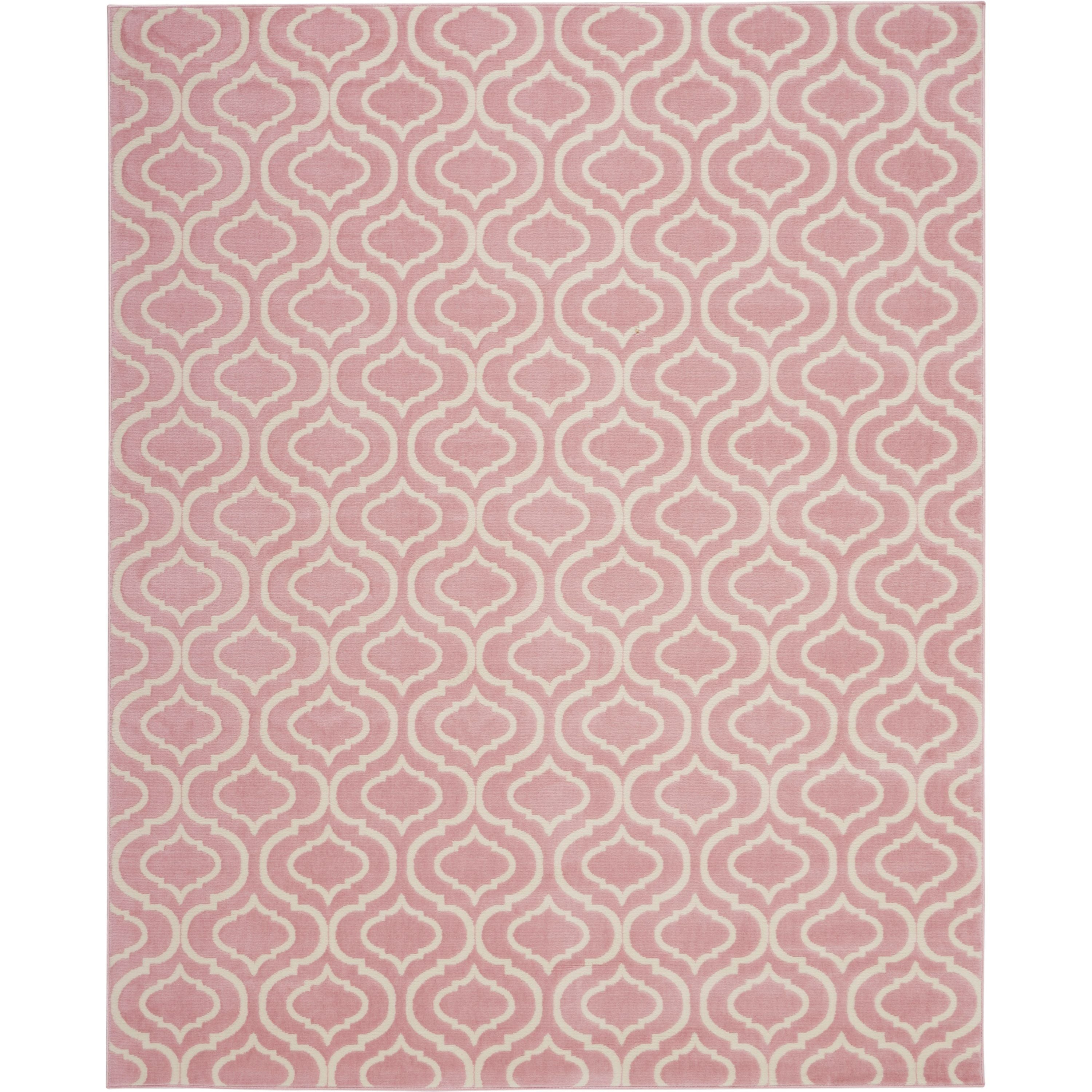 Introduce a touch of Moroccan flair with this intriguing Jubilant Collection area rug, featuring a lantern trellis pattern. Exotic yet versatile in ivory on pink, with easy-care fibers in a sleek, low-pile construction that brings life and energy to any room in the home.