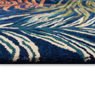Tivoli La Palma Navy area rug, a stunning addition to elevate your home decor. This exquisite rug showcases vibrant palm motifs in shades of blue, green, ivory, and rust against a deep navy backdrop. Handcrafted in India from premium 100% wool, the Tivoli Collection is renowned for its intricate tonal designs and superior finish.