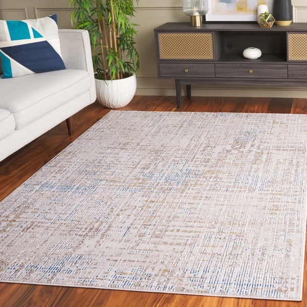Prestige PTE124B Beige Blue rug from our collection, featuring a stunning array of modern designs and chic complementary colors. Crafted using soft synthetic yarns in a medium cut pile, these rugs offer both style and practicality for any room in your home.