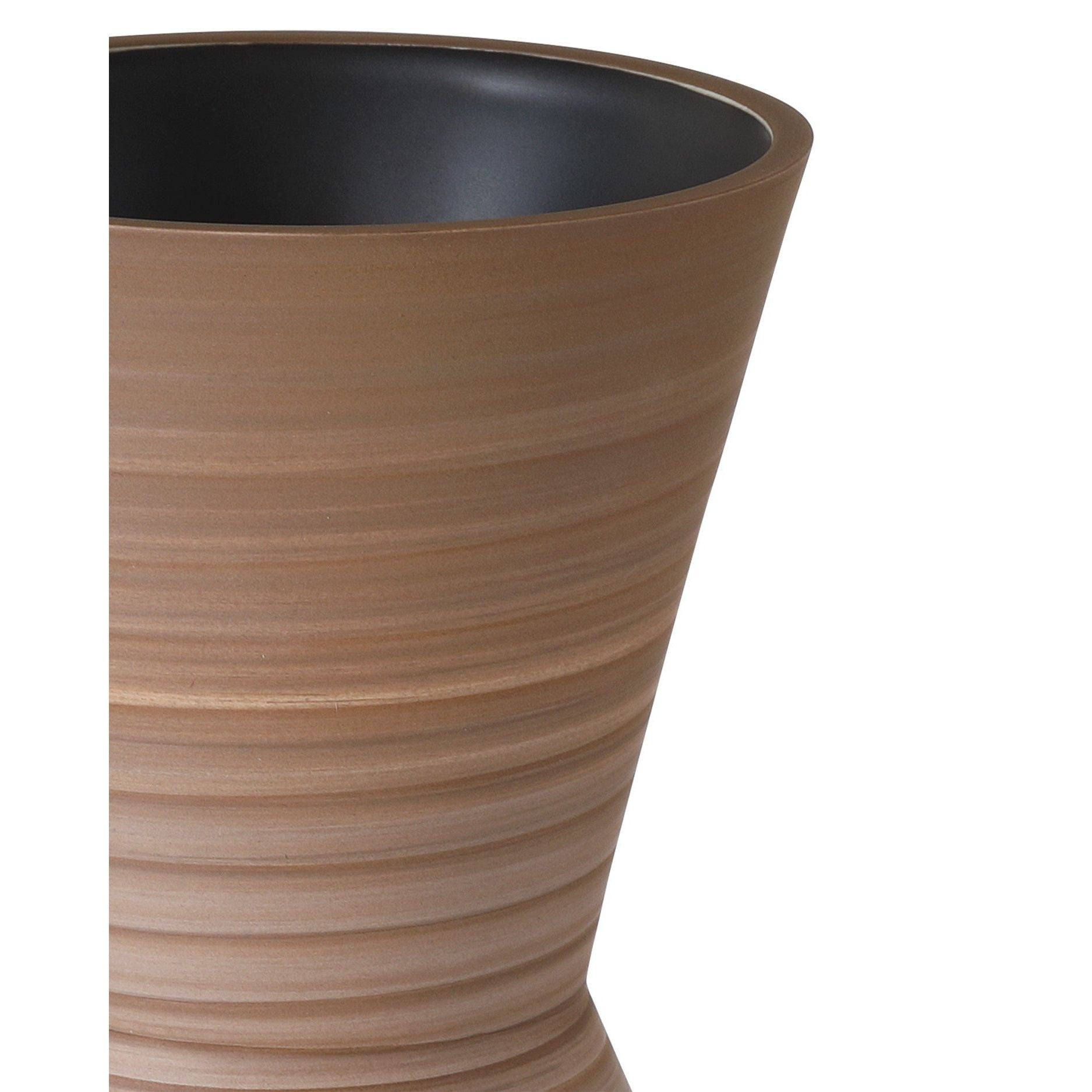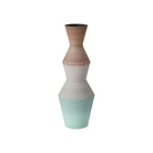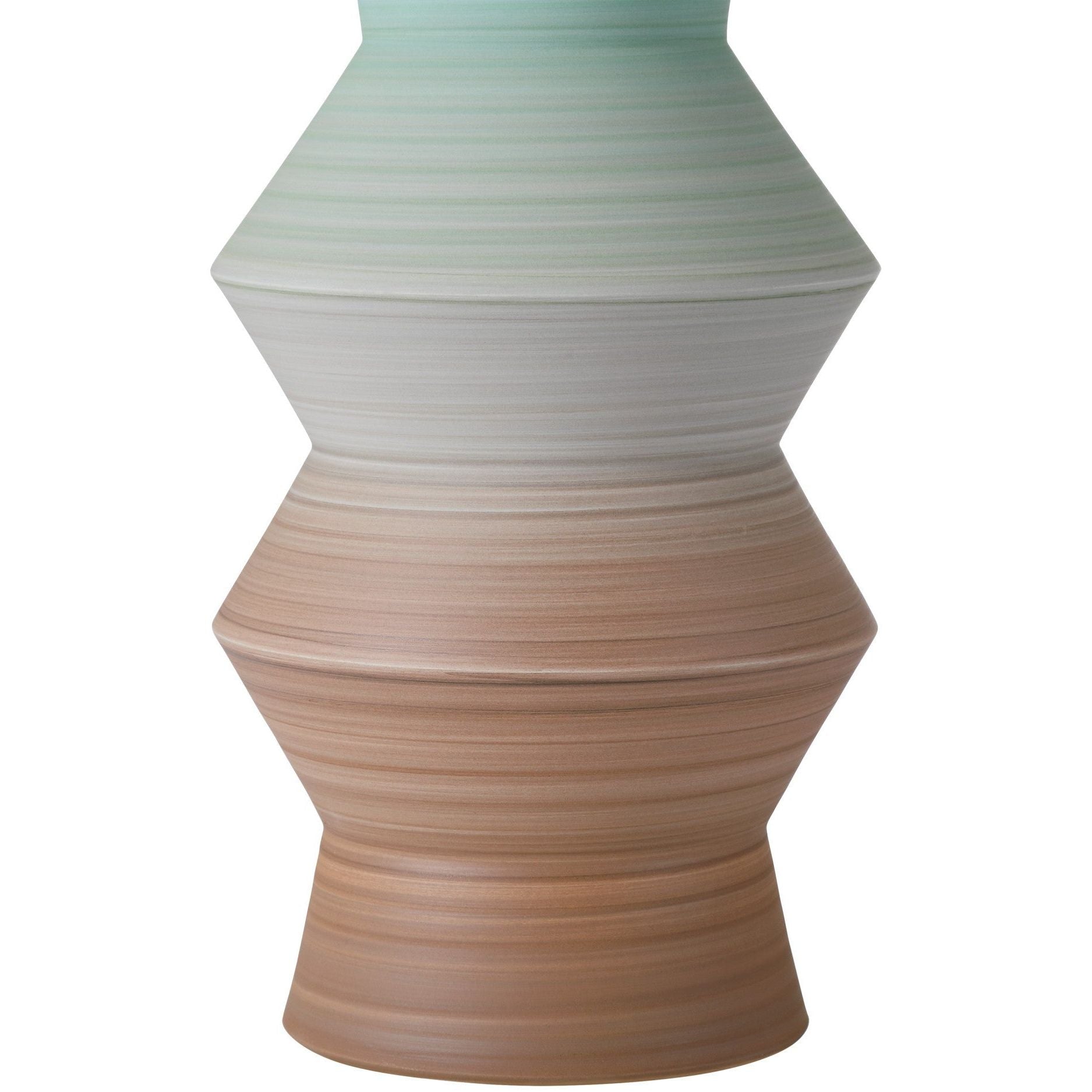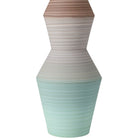 A playful retro vibe enters a room when the Happy 80's Green and Brown Vase Set come on the scene. The set includes two hand-thrown porcelain vases, each adorned with unique striations of earthy brown and pale green that are painted while still spinning on the potter's wheel. The result is a layered pattern that adds depth and character to the design. Each vase is a one-of-a-kind creation, celebrating the beauty of handmade craftsmanship.