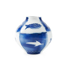Nautical charm meets handmade whimsy in our Malaga Vase, a bright piece fit for coastal holiday homes, beachy cottages, or rooms that embrace a seaside theme. Crafted from beautiful porcelain with a shiny glazed finish, the Malaga puts a modern spin on the traditional blue and white colors of classic Chinaware. Our potters have hand-painted a vibrant grid and joyful depictions of underwater life in a relaxed, expressionist style, giving the vase plenty of unique personality. Fill it with fresh blooms or style it solo—it makes for a lovely display either way.
