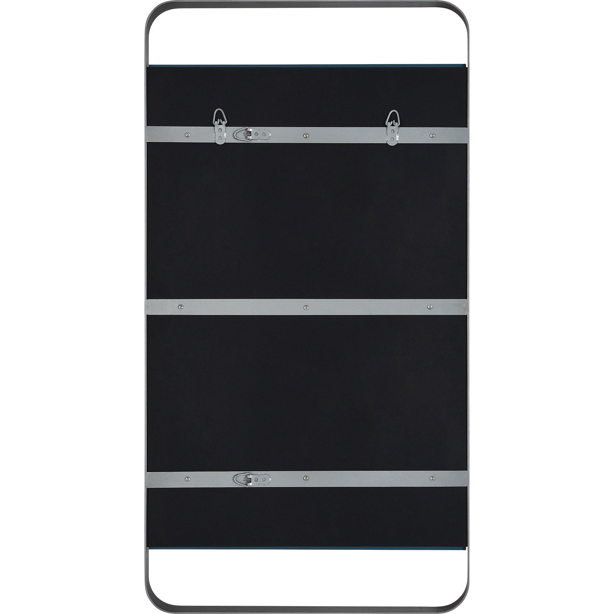 stylish Tiffey Mirror, a modern addition to elevate your space effortlessly. This rectangular wall mirror features a sleek design with a charming twist. The glass panel appears to float within the sophisticated charcoal gray metal frame, creating an industrial-chic vibe that complements any decor style.