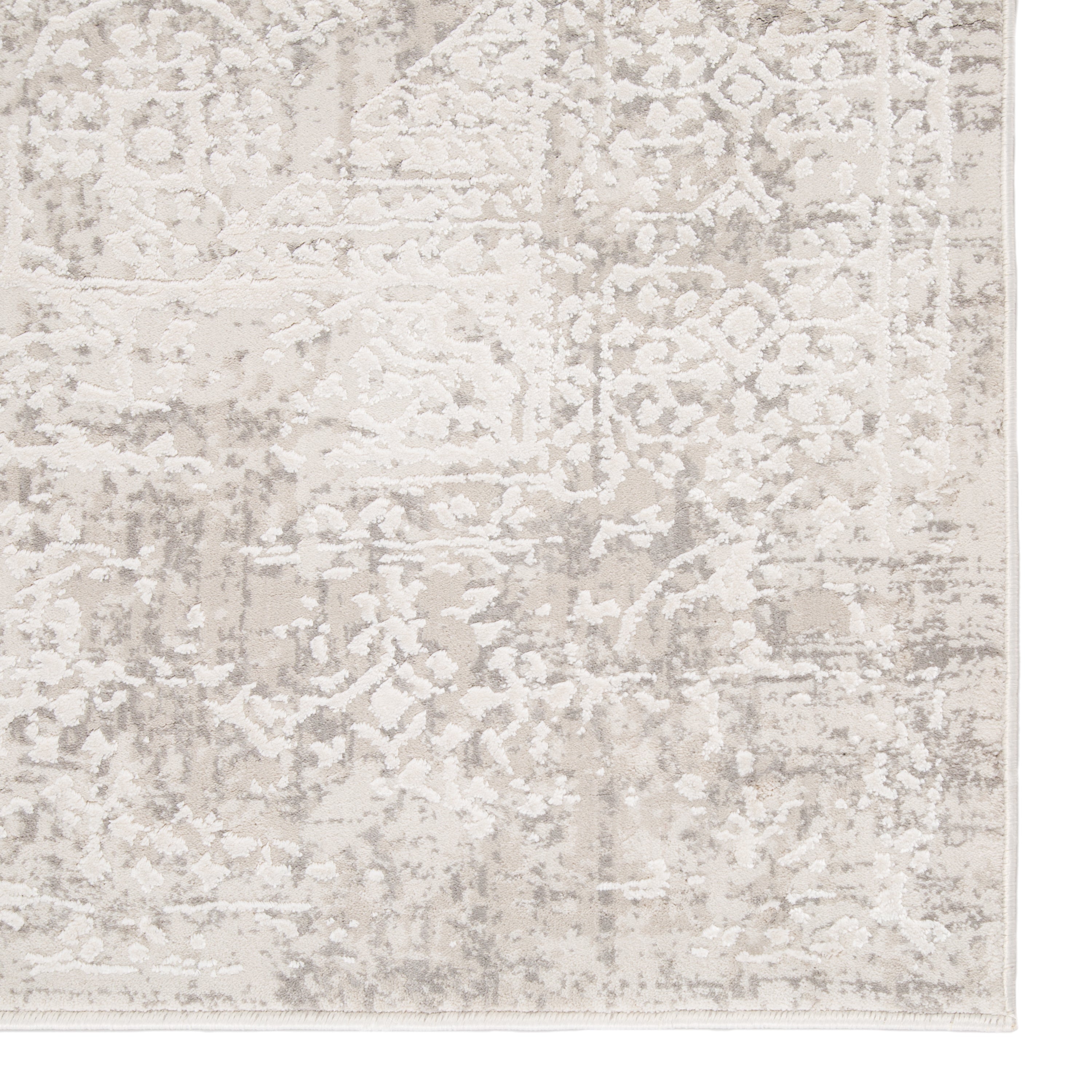 Cirque CIQ07 Lianna area rug from the exquisite Cirque collection. This rug seamlessly combines modern charm with the classic allure of antique motifs. The Lianna rug features a captivating abstract medallion design in a sophisticated white and silver palette, adding a touch of elegance to any space.