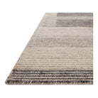 Stiles Sti 01 Dove Ink, a stunning addition to The Stiles Collection. This area rug features a one-of-a-kind design that intertwines cut pile and braided yarns to form ribbed lines and a modern colorblock pattern. The innovative construction not only offers visual appeal but also adds a tactile depth to the rug.