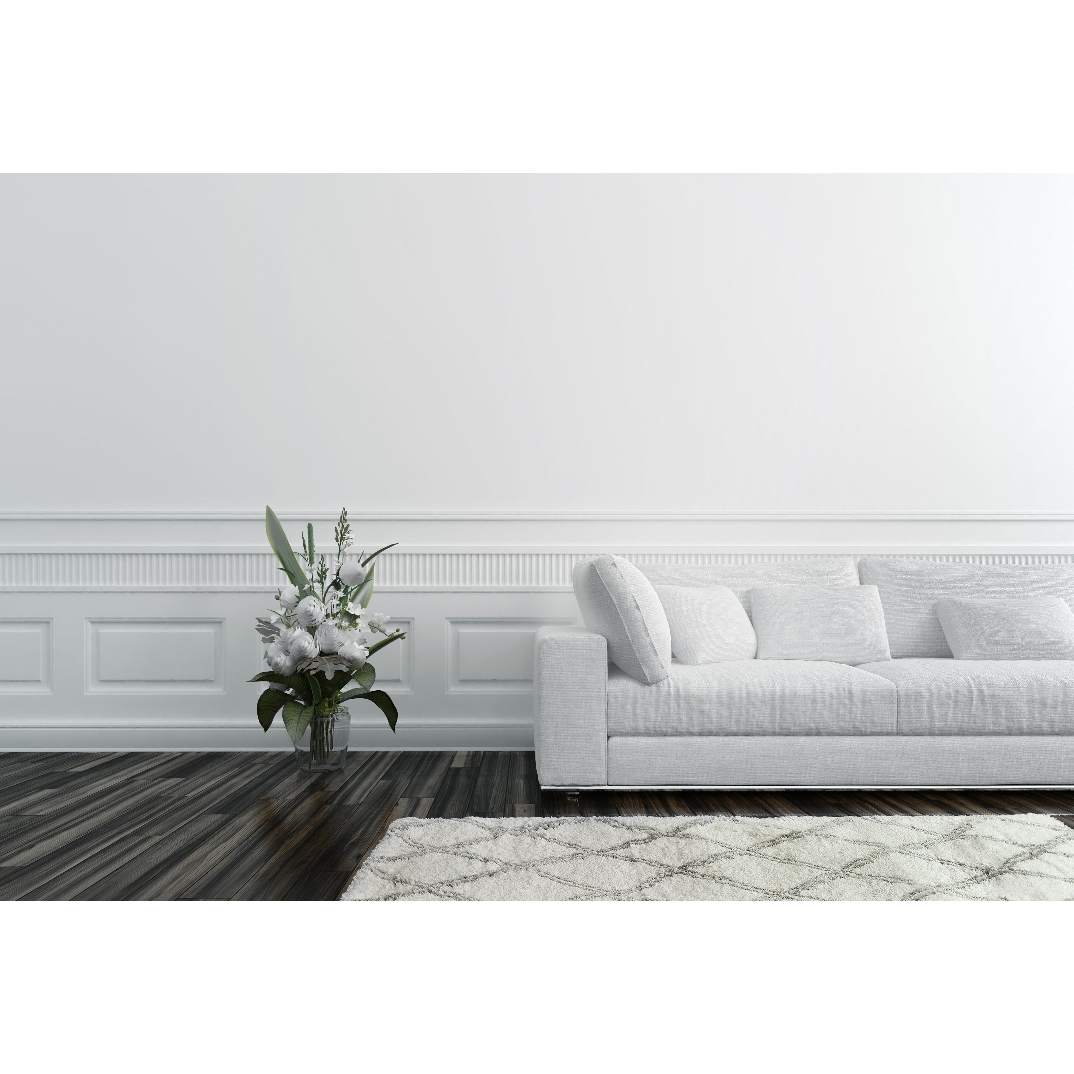 Nordic 7432 White Silver rug, a perfect addition to your home decor. Embrace the concept of hygge with this collection's minimalistic and stylish patterns that exude coziness. The neutral shades of cool grey and pearled ivory make it easy to coordinate with any room decor. The fluffy pile adds a touch of comfortable elegance, making it ideal for creating a warm and inviting atmosphere in your space.