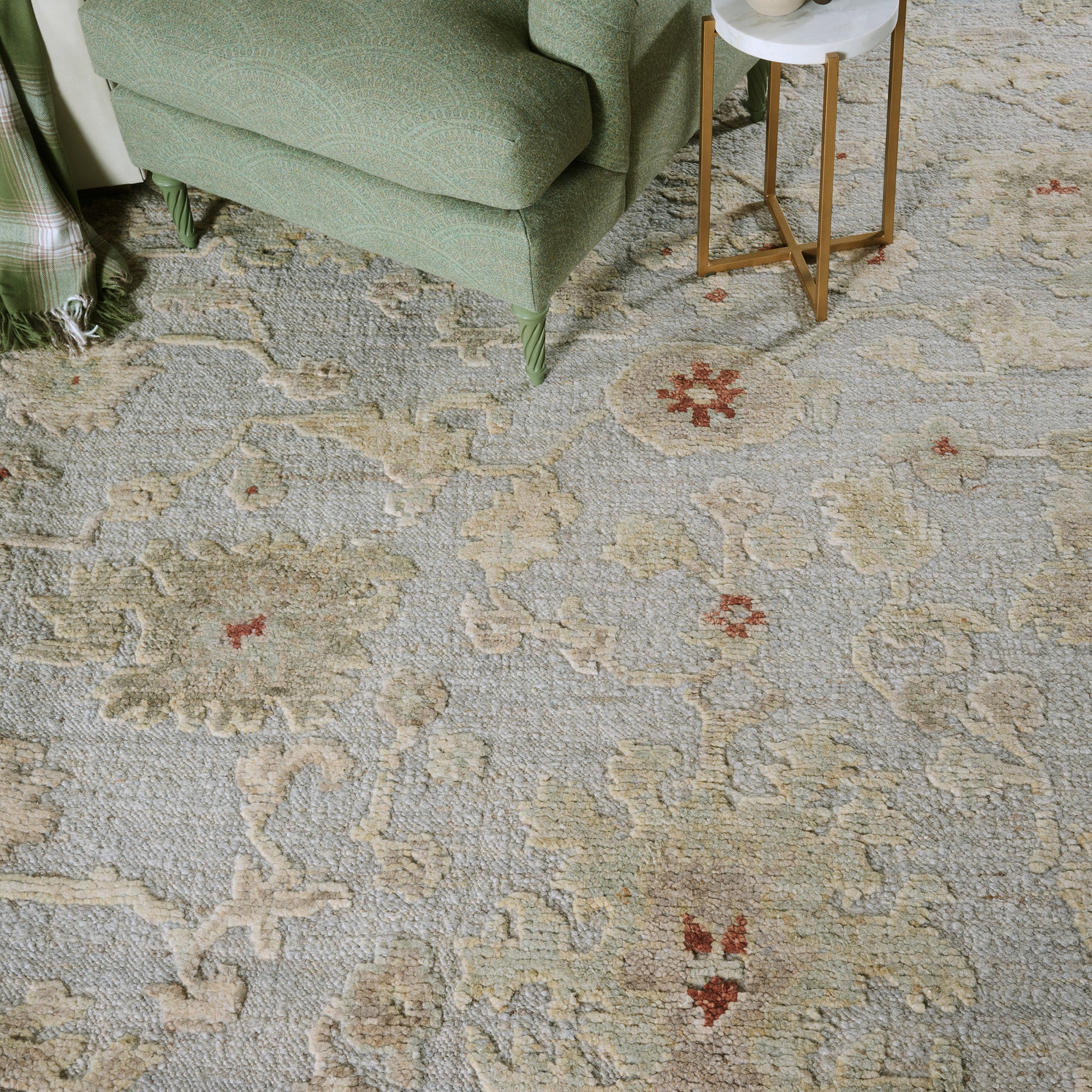 Arthur is a Hand-Knotted Collection, meticulously crafted from premium wool in India. Featuring elevated traditional designs, subtle yet sophisticated color palettes, and luxurious highlow textures that create a regal aesthetic. Crafted by master ar tisans, each rug is a testament to timeless elegance and exceptional durability, making them an essential addition to any refined home.