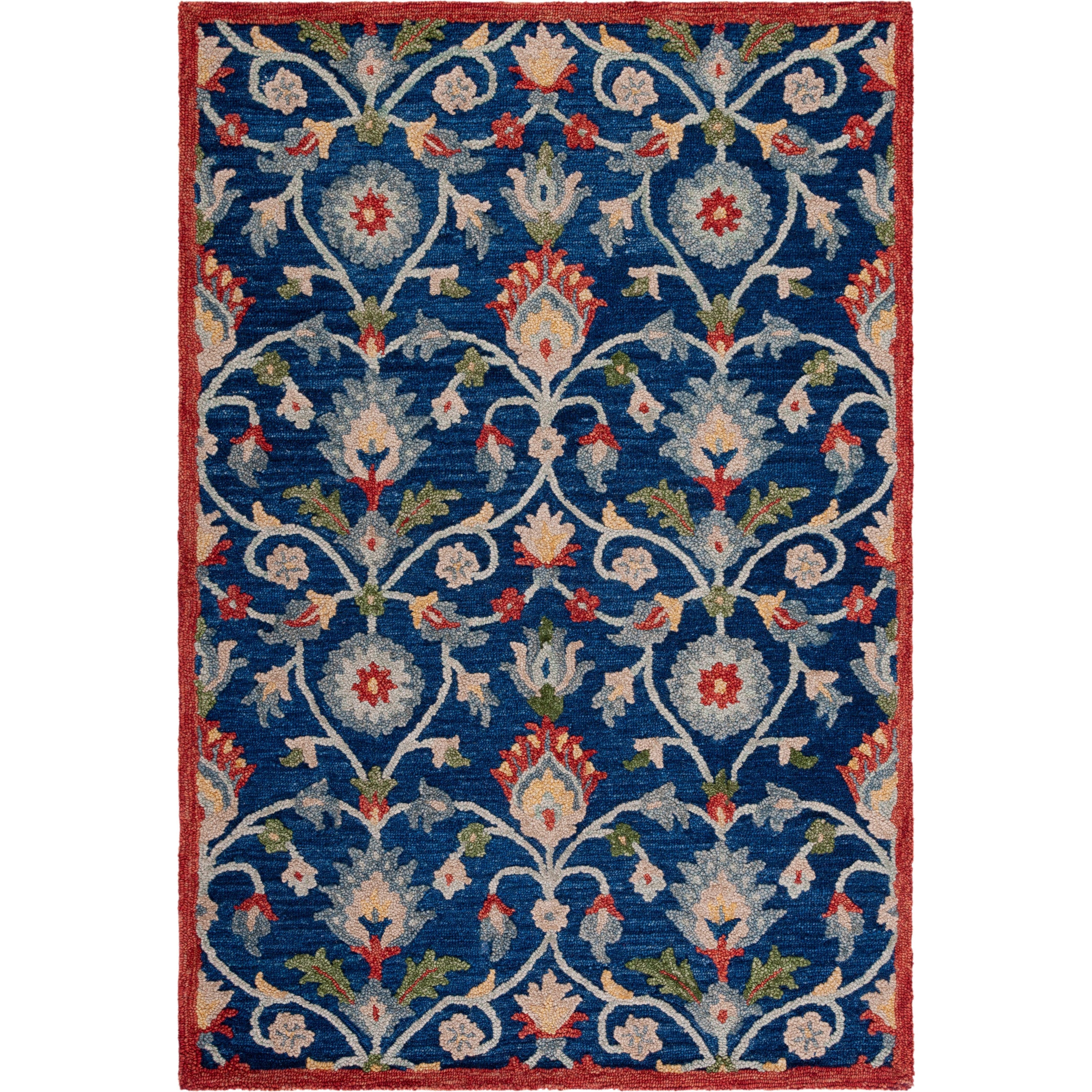 Blossom BLM562M rug from the exquisite Blossom Collection - a modern twist on traditional hooked rugs. Handcrafted with large woven loops, these rugs bring a vibrant and refreshing touch to any country casual space. Crafted from 100% premium wool, Blossom rugs seamlessly blend classic English chintz and block print patterns with contemporary home decor trends. With a plush thickness of approximately 0.5 inches, this rug provides both style and comfort to your living space.