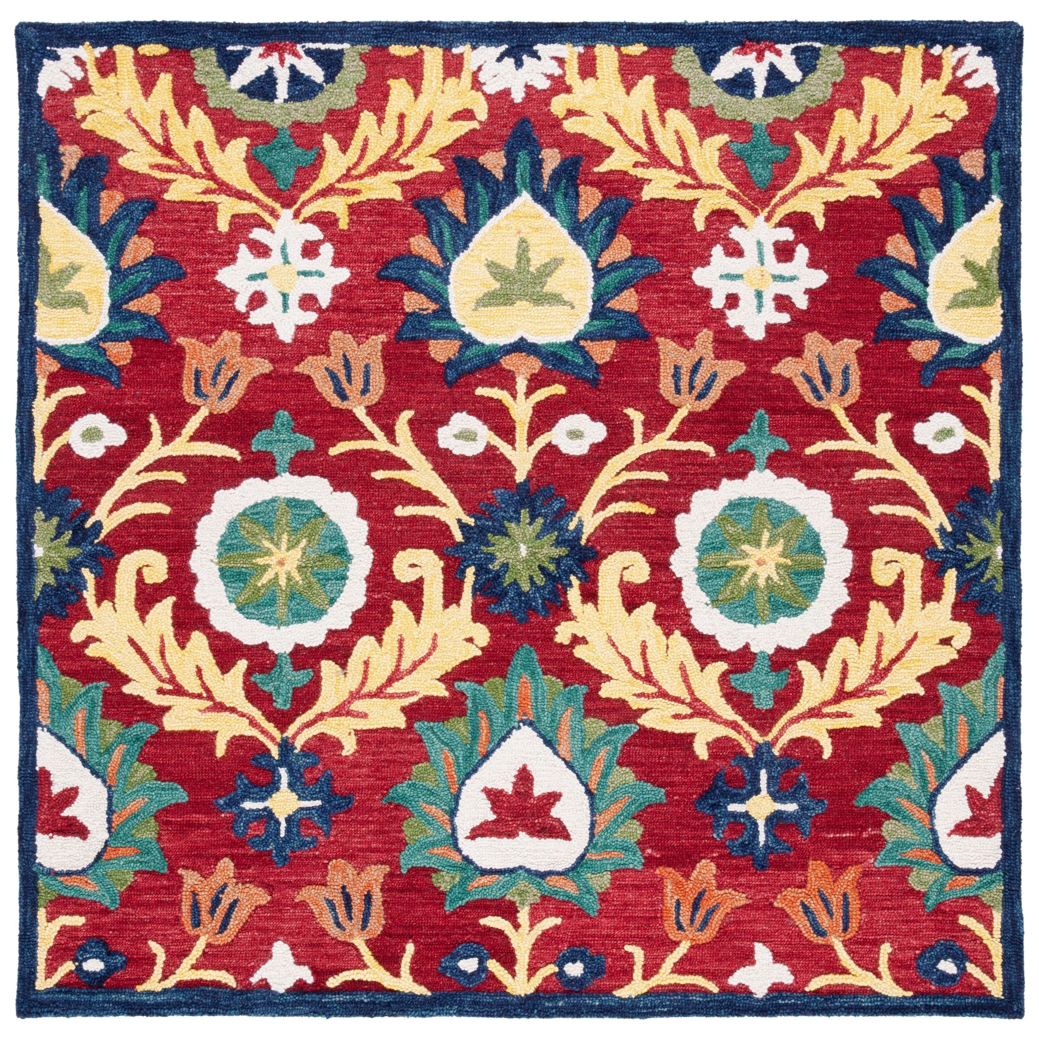 Blossom BLM563D rug from the Blossom Collection, a vibrant and modern twist on traditional hooked rugs. Crafted with large hand-woven loops and 100% premium wool, these rugs add a touch of sophistication to any country casual interior. The texture of the Blossom rugs brings a fresh feel to your living space, incorporating classic English chintz and block print motifs seamlessly into contemporary home decor. With an approximate thickness of 0.5 inches, this rug offers both style and comfort in equal measure.