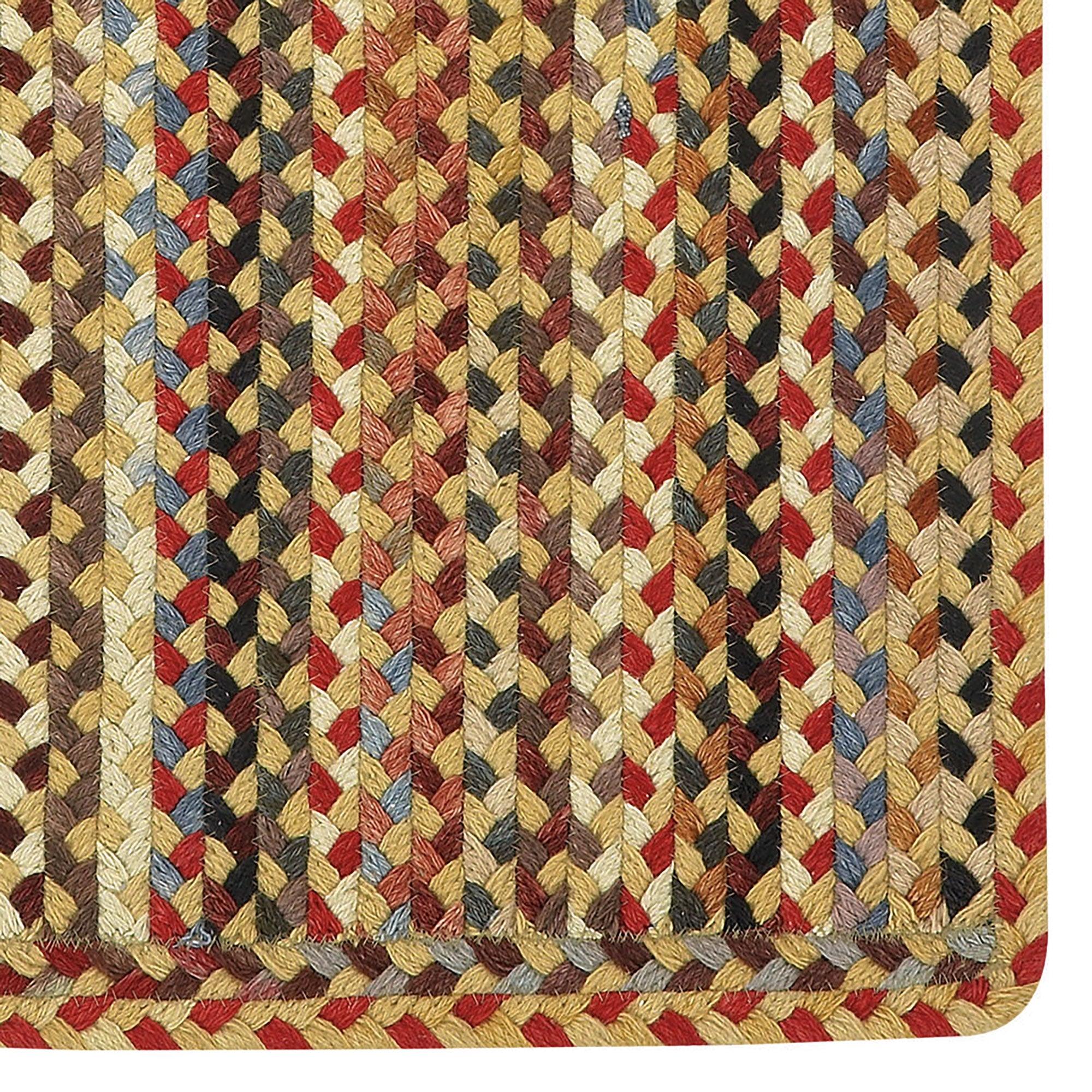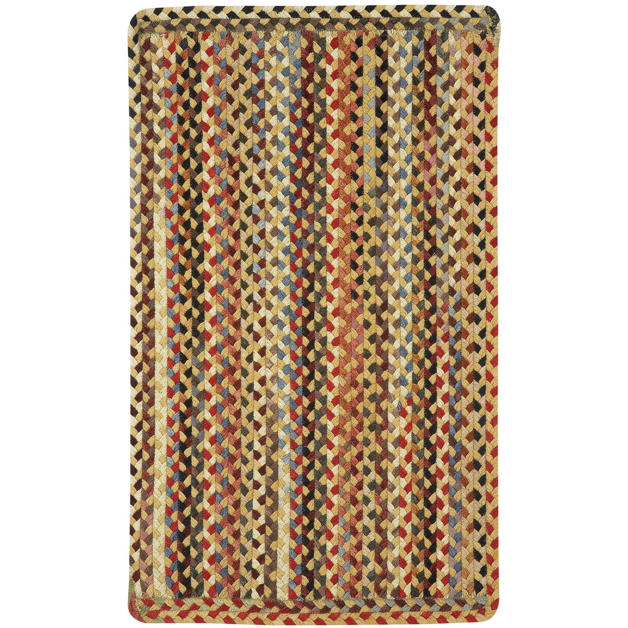 exquisite St Johnsbury Light Gold Vsr rug by Plymouth. Carefully handcrafted with premium all-wool material, this rug boasts a unique double braided tape braid for added durability. The heavy and wide design is beautifully accentuated by a selection of classic colors, creating a timeless appeal. Featuring an antique finish with an overall variegated pattern, this rug is 100% reversible for versatility.