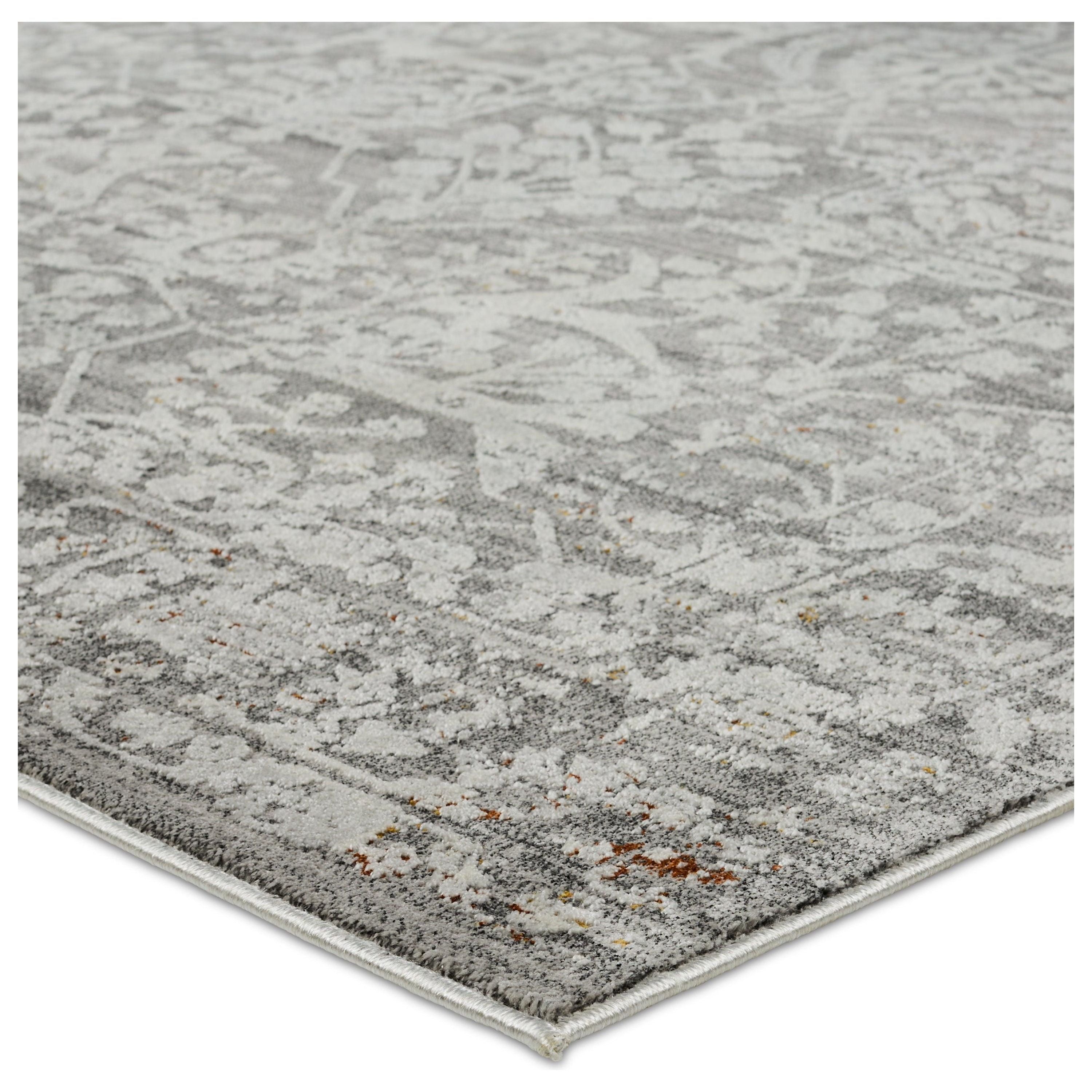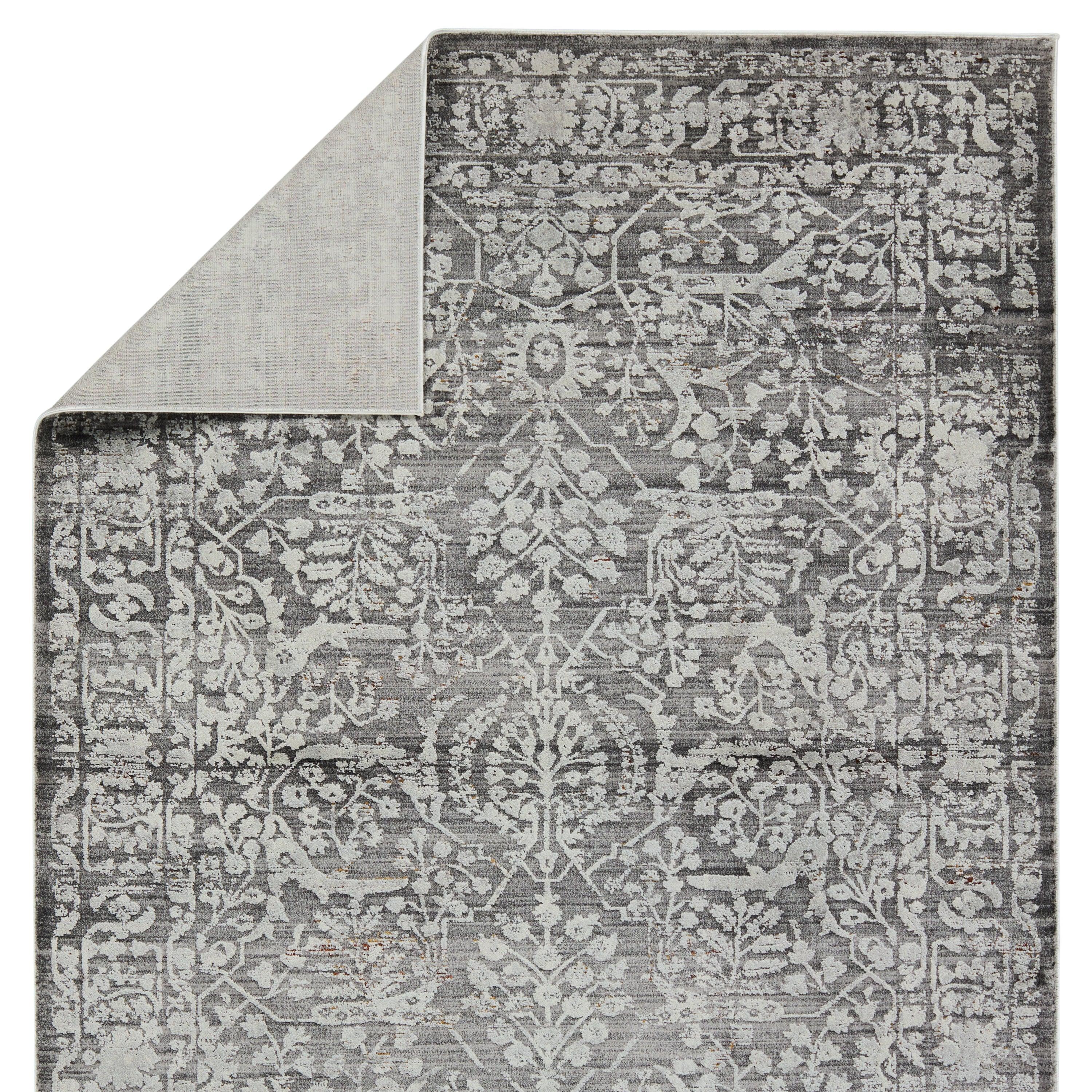 The Acadia collection features an assortment of both contemporary and timeless designs paired with a sumptuous sheen and irresistible, soft hand. The Elvira area rug depicts a distressed floral pattern in transitional hues of gray, cream, and silver with hints of rust and gold. The high-low pile creates depth and texture that perfects high and low traffic spaces of the home such as bedrooms, living rooms, offices, entryways, and halls.