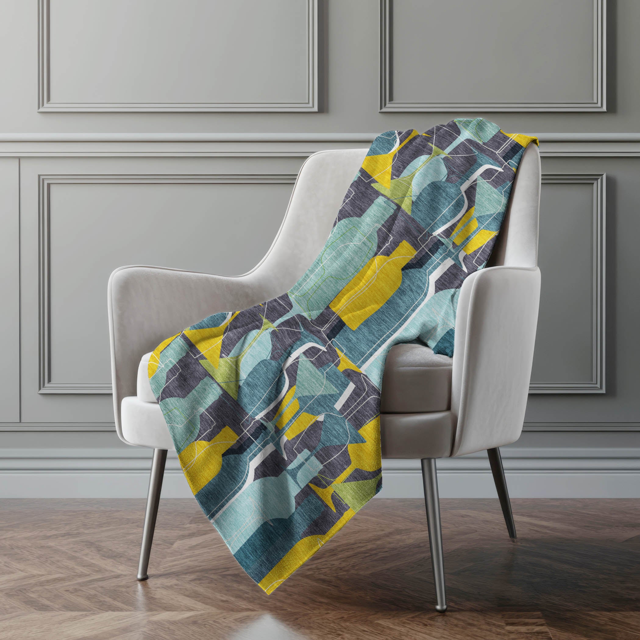 Enrich your kitchen with the playful charm of wine bottles and glasses beautifully woven into a martini-inspired pattern. At an ample 50" x 70" inches, its luxuriously soft-touch front and warm sherpa backing wrap you in ultimate comfort, perfect for cozy indoor and covered outdoor settings. Made from fade-resistant polyester microfiber, it offers both durability and the practicality of machine-washable care, ensuring convenience and style.