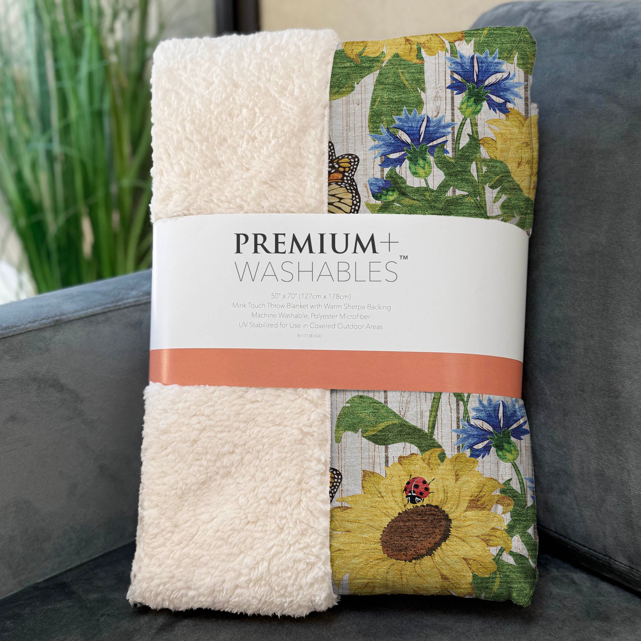 Invite a refreshing breeze of nature into your kitchen with an enchanting design of sunflowers and butterflies set against a barnwood backdrop. Sized at an impressive 50" x 70", it envelops you with a luxuriously soft-touch surface and sherpa backing, offering unmatched comfort. Built to last with fade-resistant polyester microfiber, it's perfect for both indoor and covered outdoor spaces, plus it's machine-washable for effortless upkeep.
