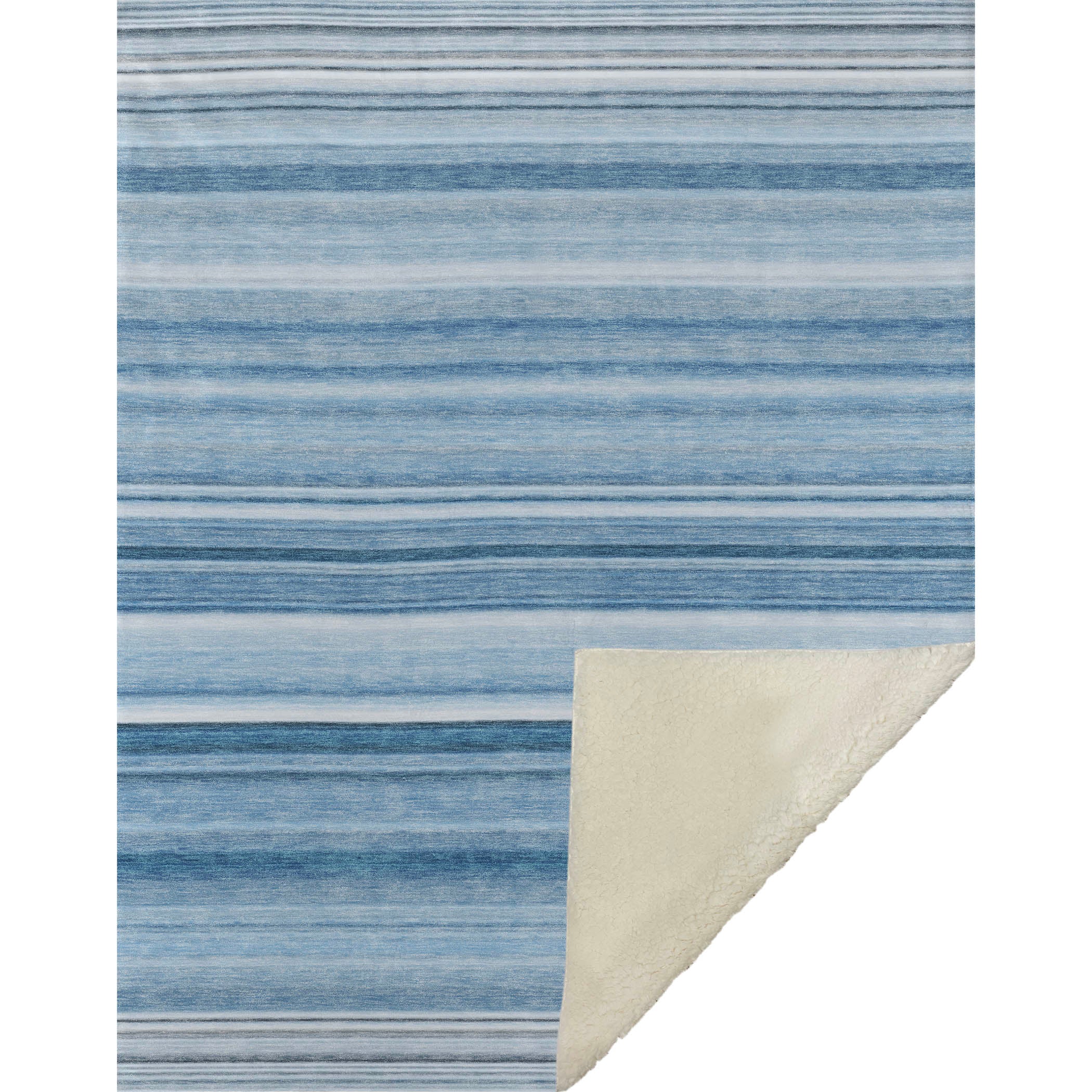 Immerse yourself in the serene beauty of gentle horizontal lines and soft tonal hues offered by this alluring piece. Thoughtfully oversized at 50" x 70", it envelops you in the sumptuous softness of its delicate front, paired with the inviting warmth of a sherpa backing. Crafted from fade-resistant polyester microfiber, it’s a versatile choice for indoor and covered outdoor spaces, and its machine washable ease ensures that simple care is always at your fingertips.