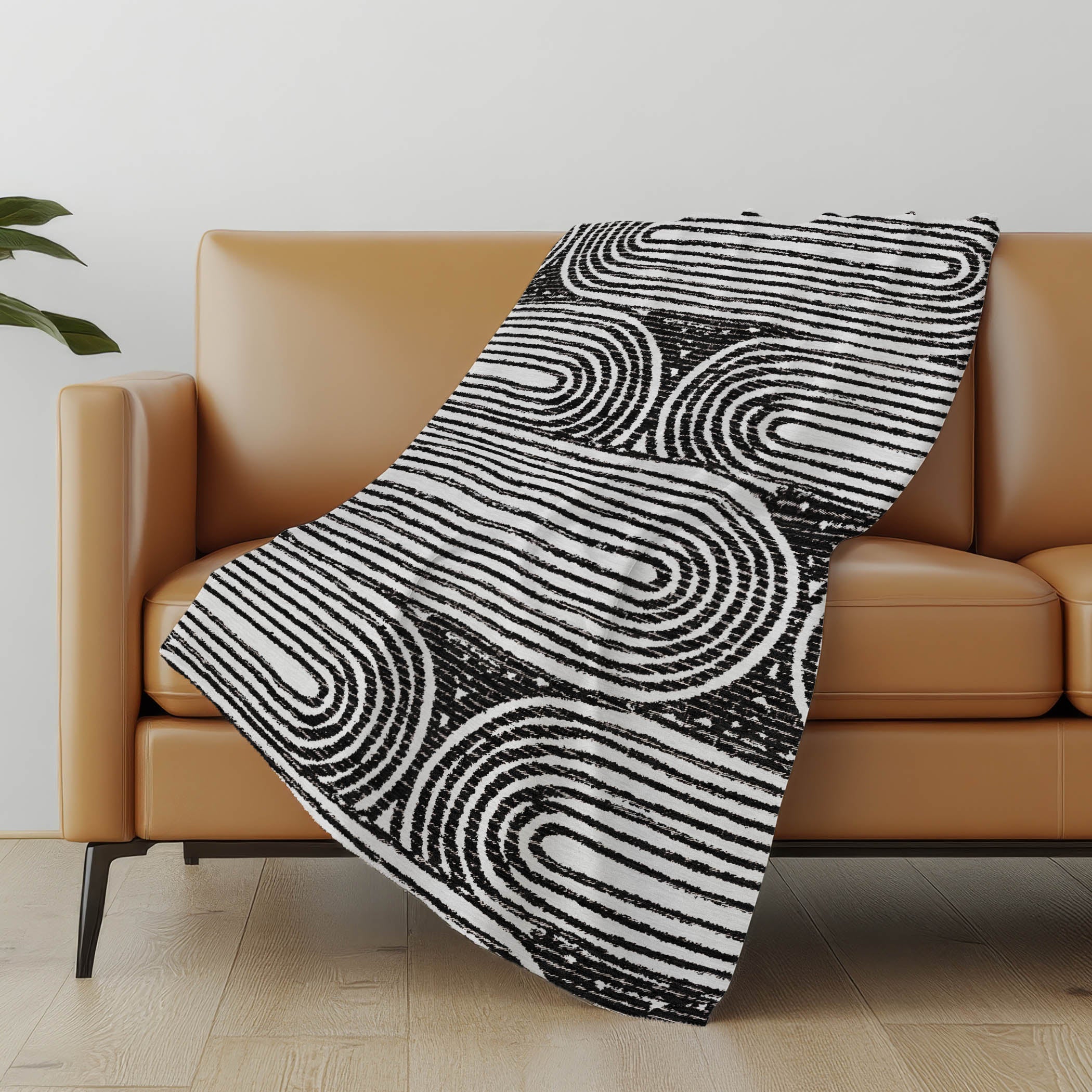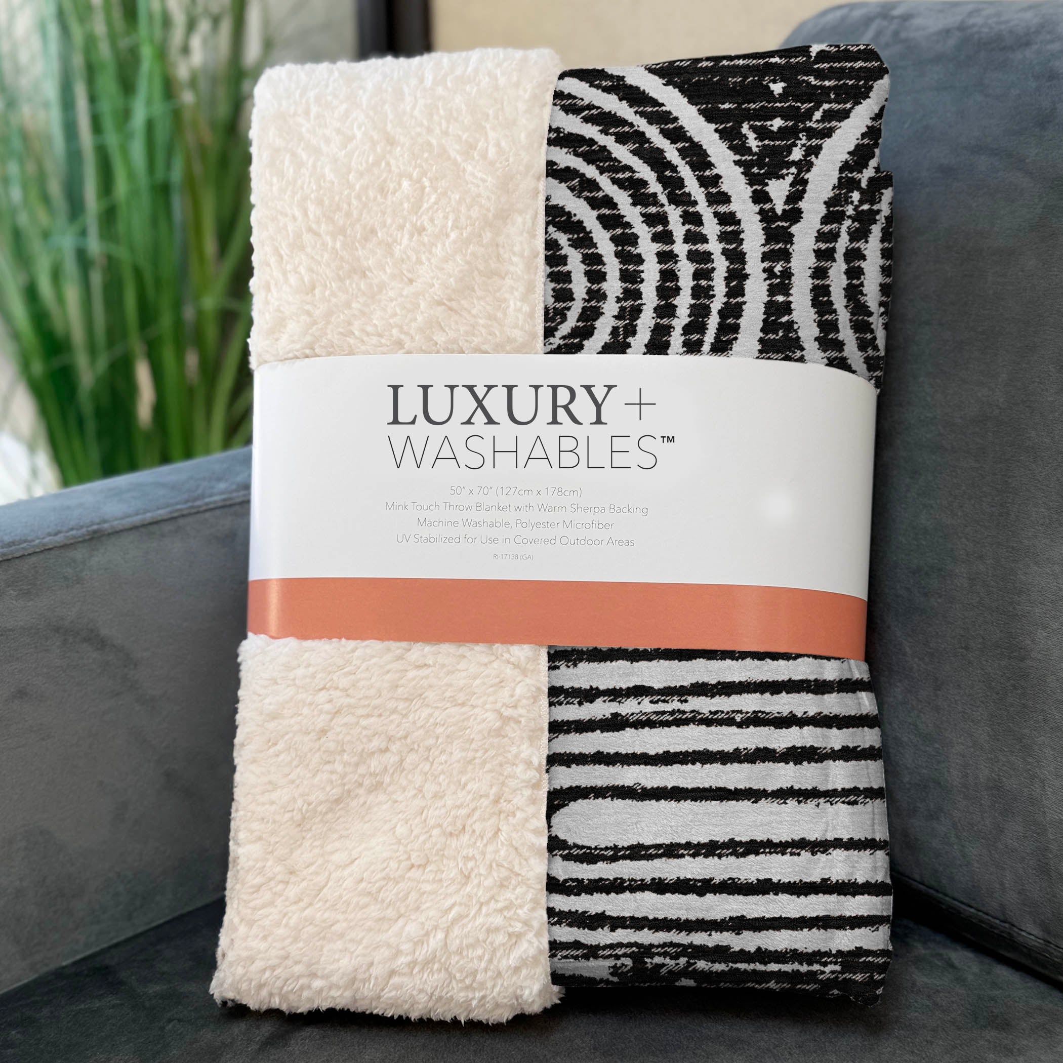 Presenting a modern masterpiece that marries contemporary style with art deco design, this piece boasts a captivating ribbed oval pattern that adds flair to any decor. The oversized 50" x 70" dimensions envelop you in a luxurious soft-touch front and warm sherpa backing, ensuring unmatched warmth and comfort. Crafted from fade-resistant polyester microfiber, it's perfect for indoor and covered outdoor spaces, with easy, stress-free maintenance thanks to its premium machine washable design.