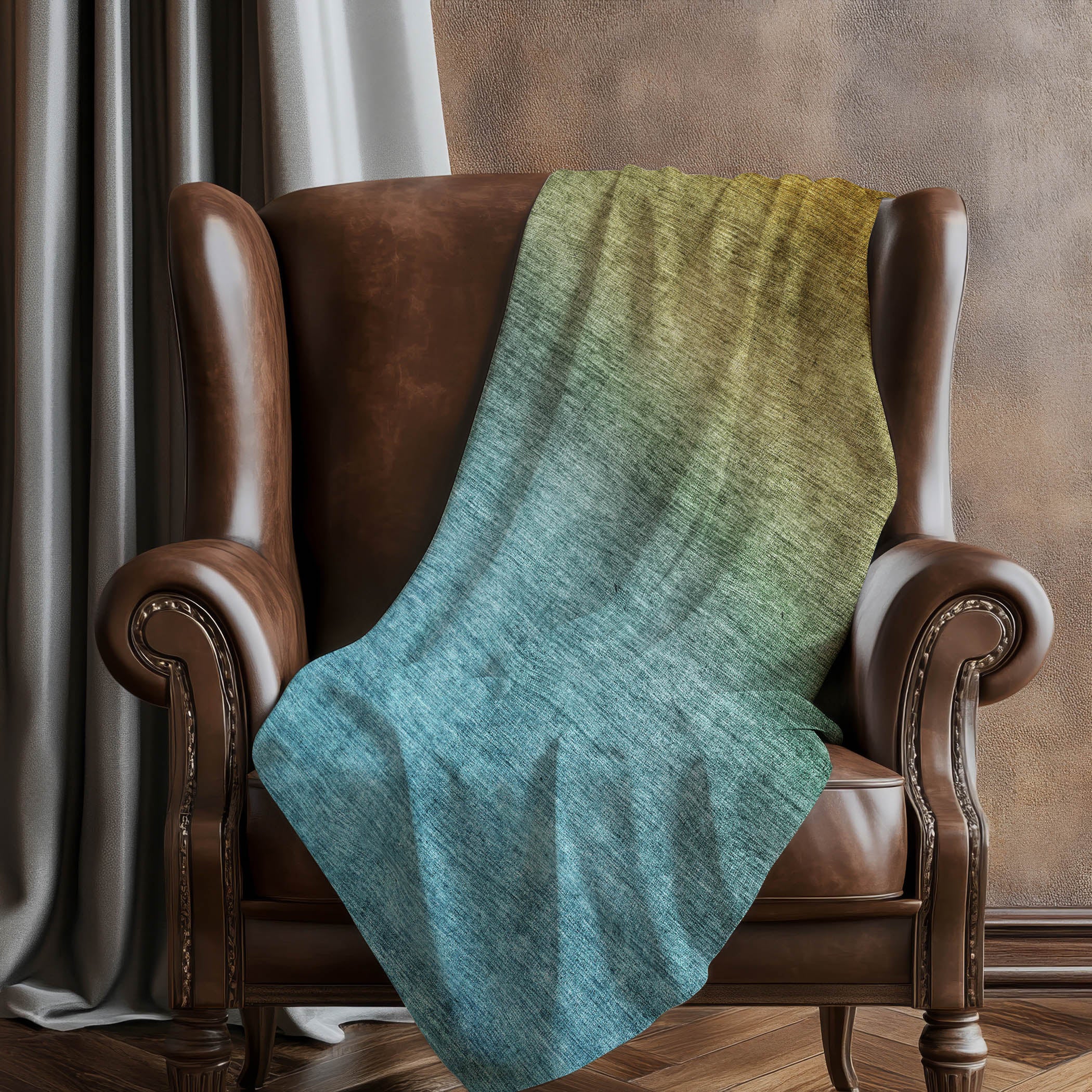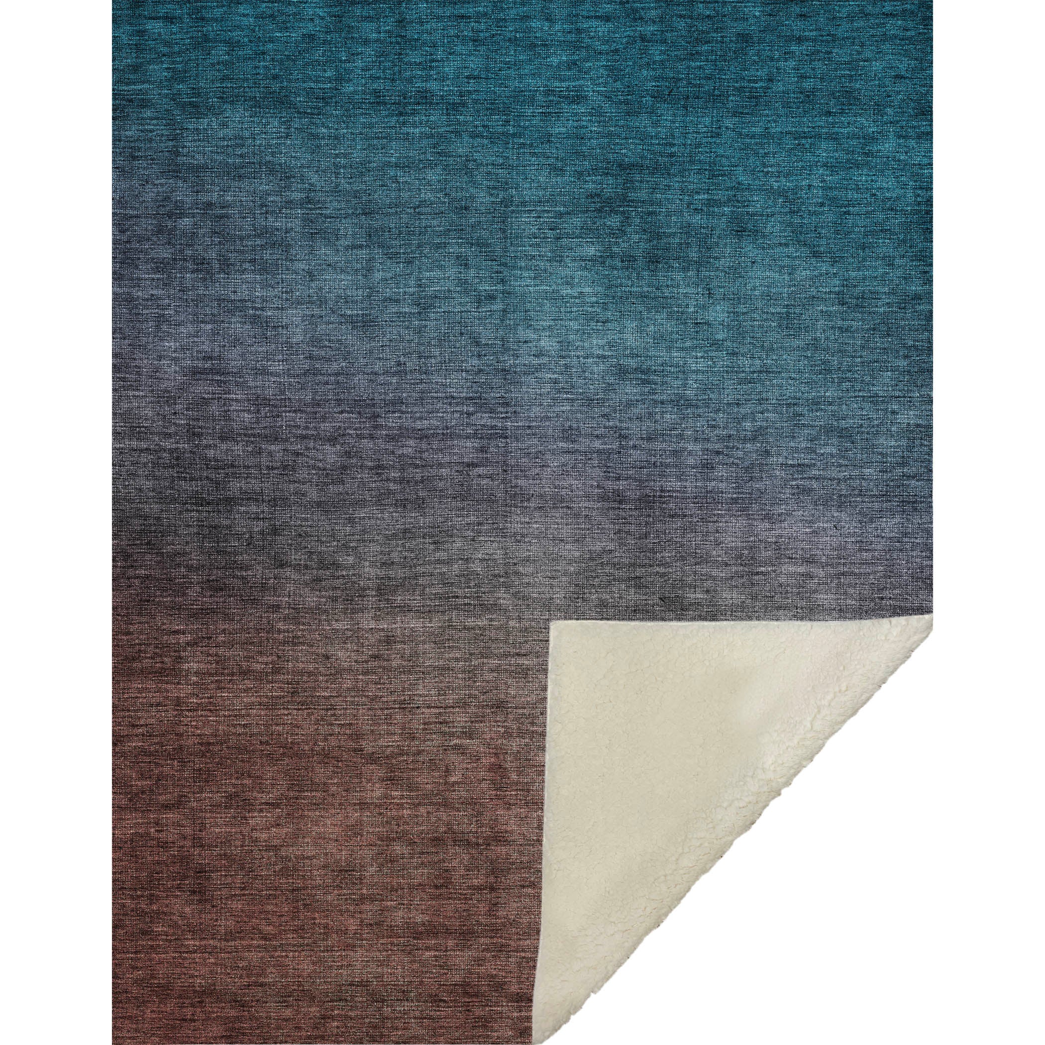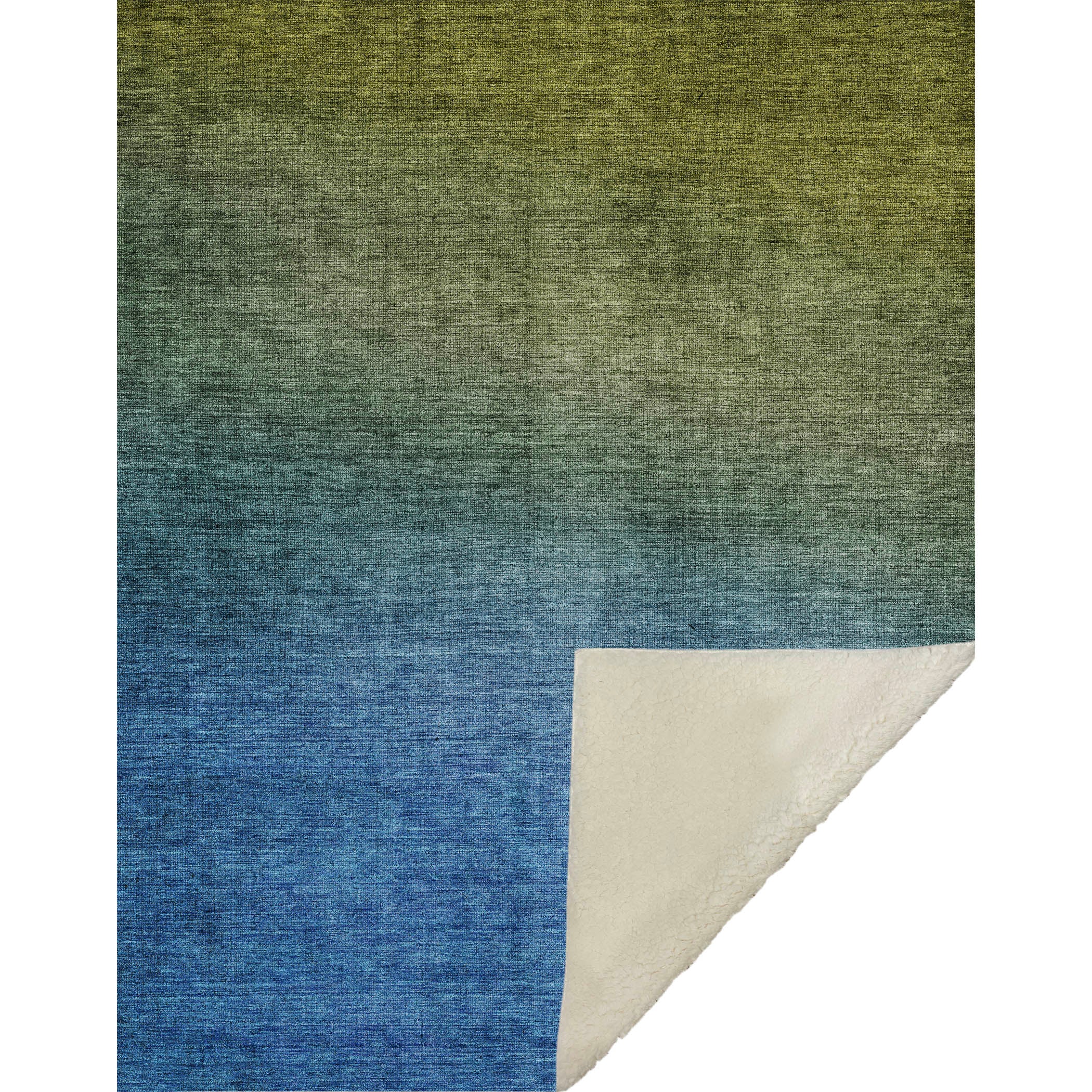 Breathe life into your living space with the captivating ombre effect that transitions seamlessly from hue to hue, adding a visual symphony to any room. The transitional style captures both contemporary and traditional charm, making it a versatile fit for all decor. Generously oversized at 50" x 70", it offers the ultimate in comfort with its luxuriously soft-touch front and cozy sherpa backing. Crafted from fade-resistant polyester microfiber, it’s perfect for both indoor and covered outdoor enjoyment, while its premium machine washable design ensures easy care.