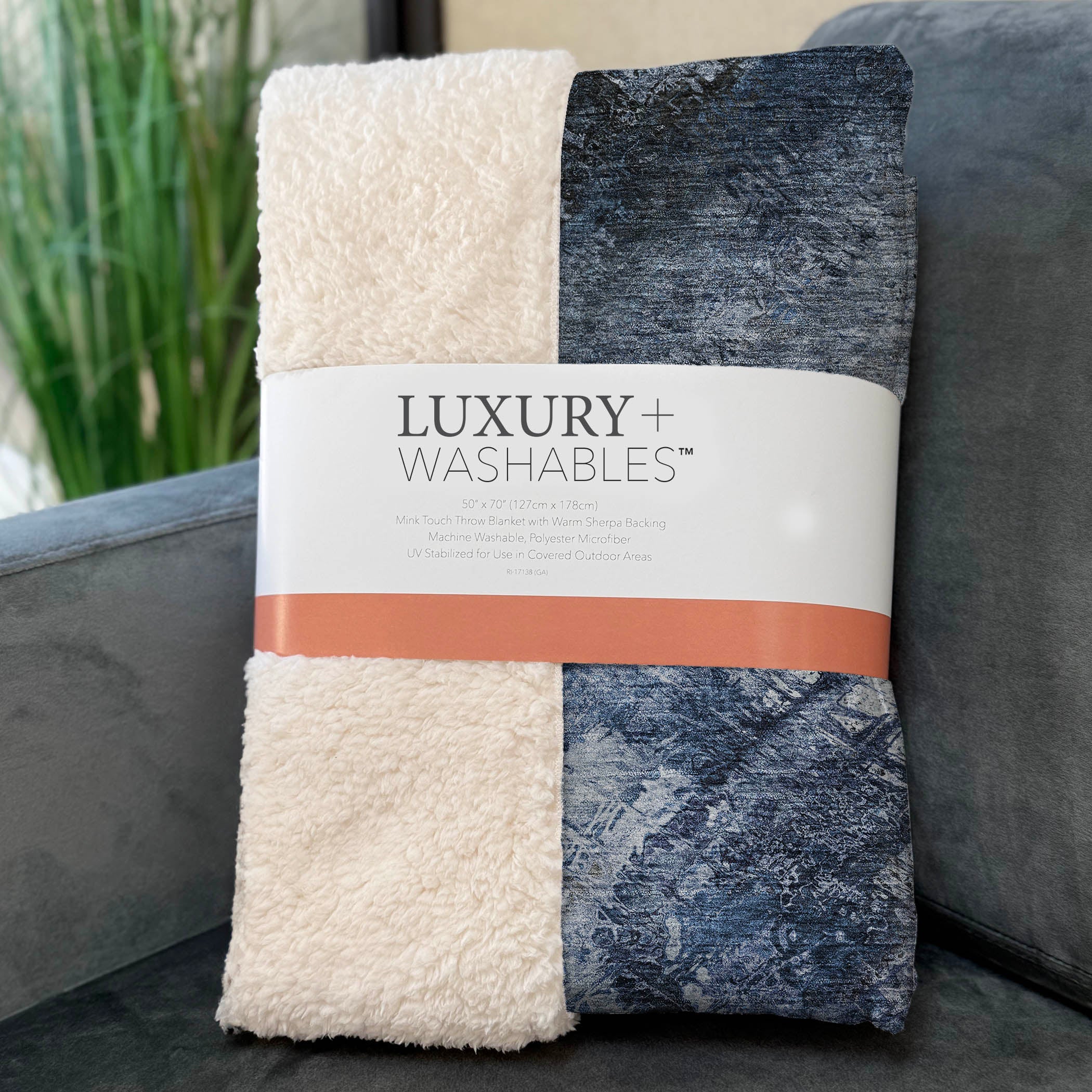Discover the essence of transitional style with diagonal lines that evoke a paintbrush swept across a modern canvas. Spanning an expansive 50" x 70", it offers unmatched coziness through its luxuriously soft-touch front and warm sherpa backing, designed for indoor and covered outdoor use. Crafted from fade-resistant polyester microfiber, it combines aesthetic allure with practical convenience, featuring premium machine washable care for easy maintenance.