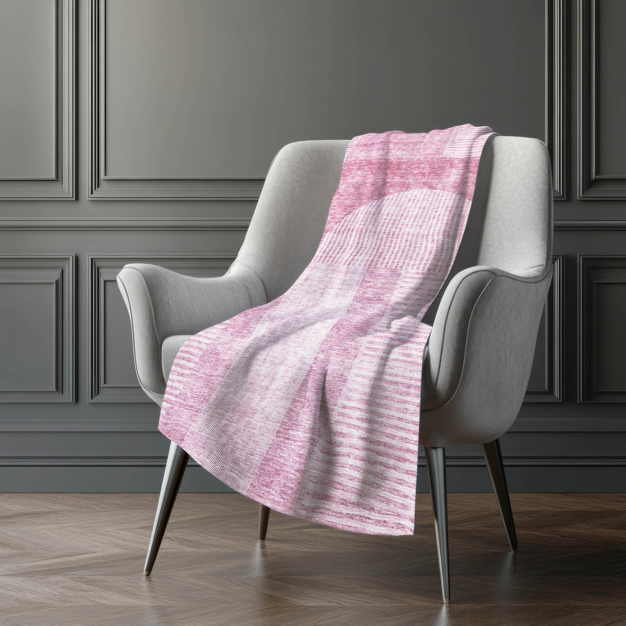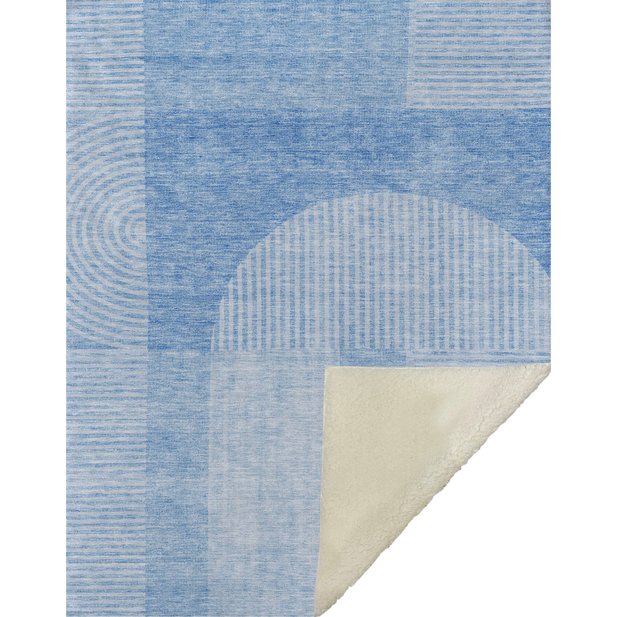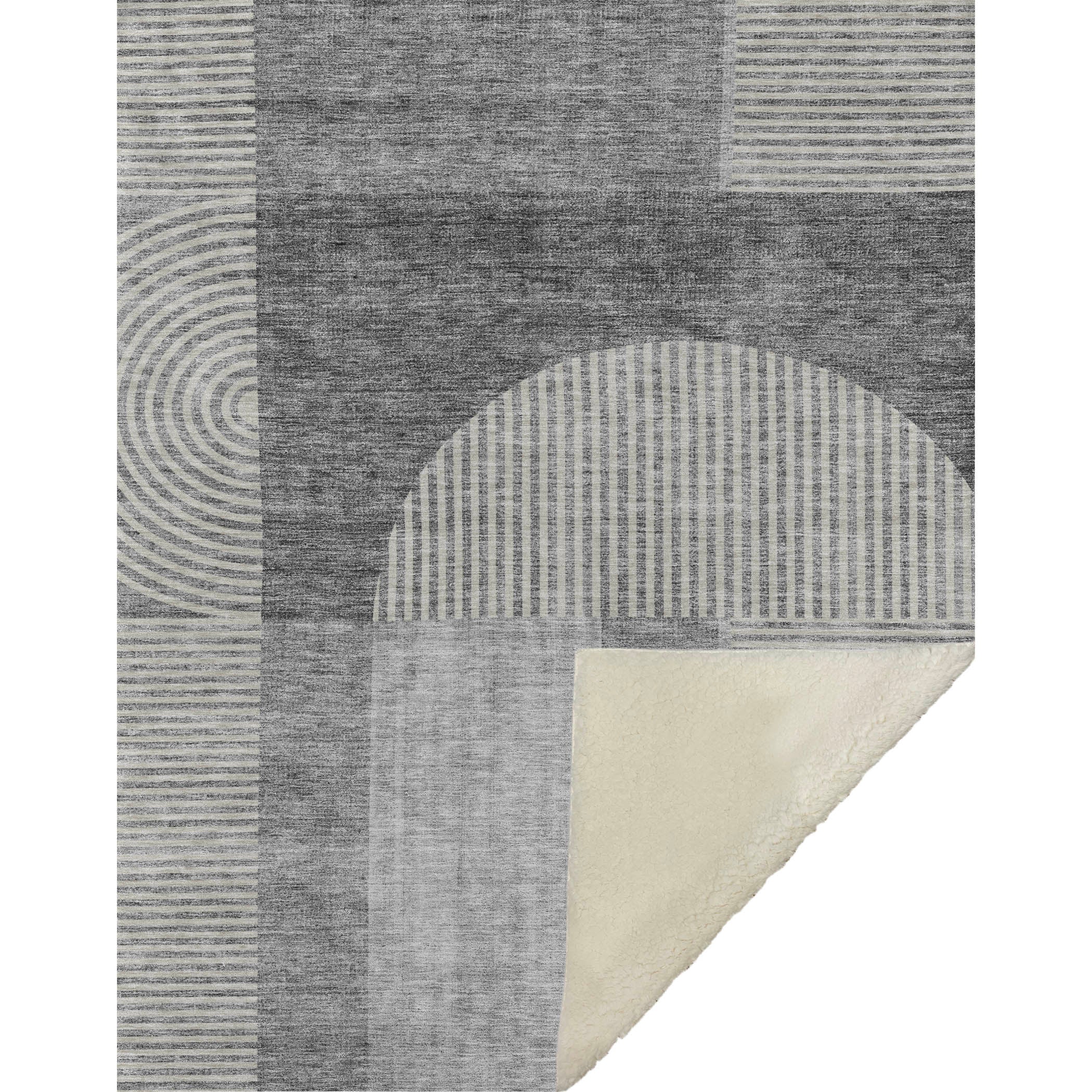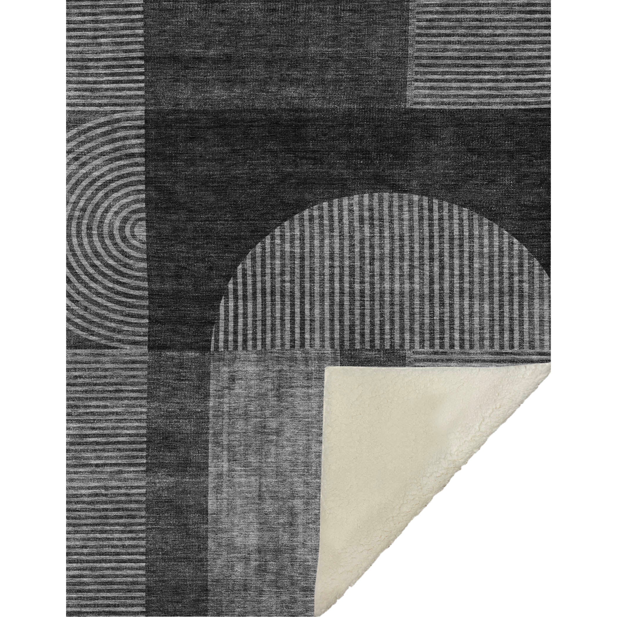 Immerse yourself in the captivating blend of modern futuristic design and Art Deco allure, crafted specifically for transitional spaces. Enjoy the oversized 50" x 70" dimensions featuring a luxuriously soft-touch front combined with a warm sherpa backing, offering ultimate comfort. Made from fade-resistant polyester microfiber, it ensures durability for both indoor and covered outdoor use, and with its premium machine washable feature, maintenance is a breeze.