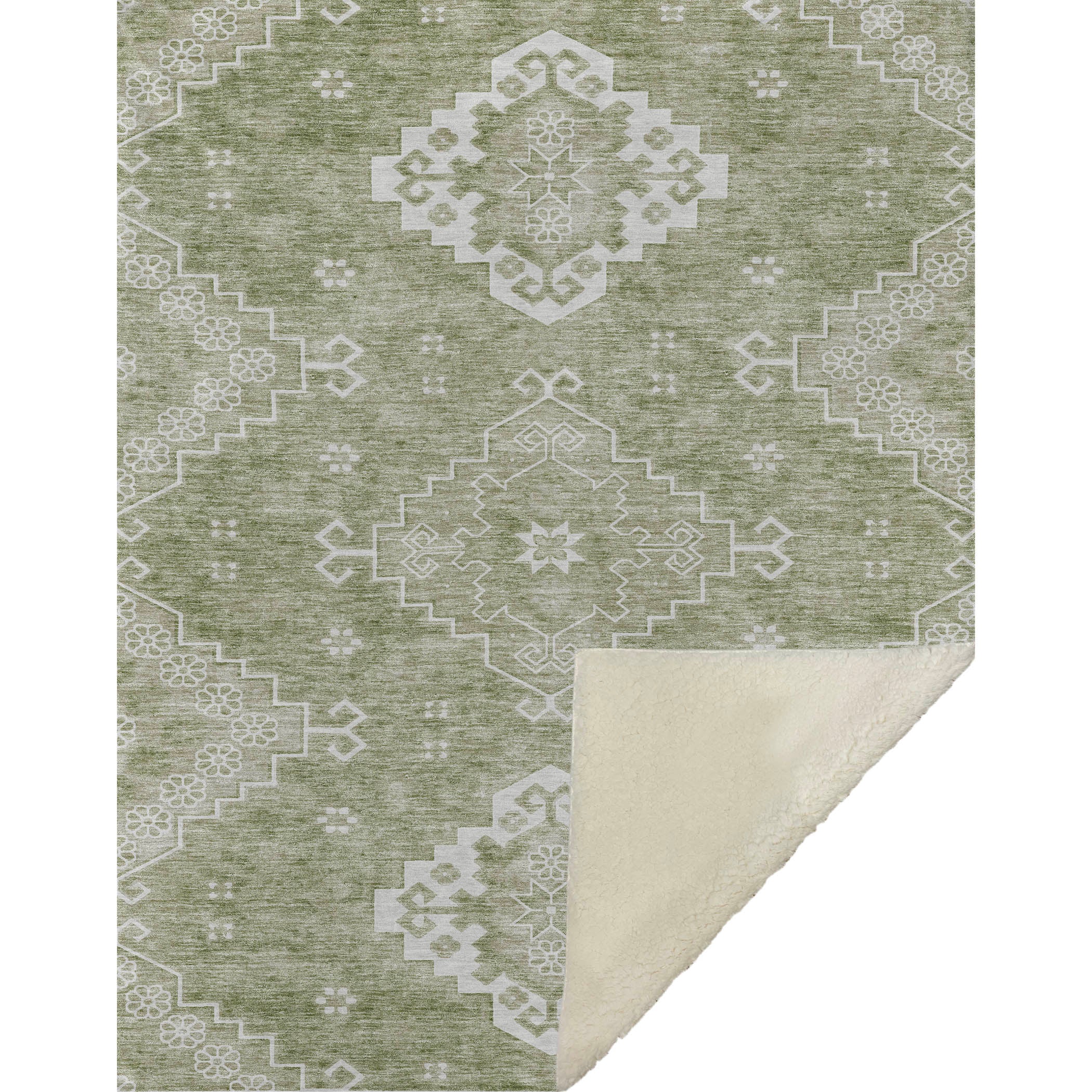Experience a tapestry of timeless allure with intricately detailed medallions taking center stage. This traditional gem, oversized at 50" x 70", envelops you in luxury with a soft-touch front and warm sherpa backing, providing unmatched comfort. Crafted from fade-resistant polyester microfiber, it's perfectly suited for both indoor and covered outdoor spaces, while its Premium Machine Washable design ensures effortless maintenance.