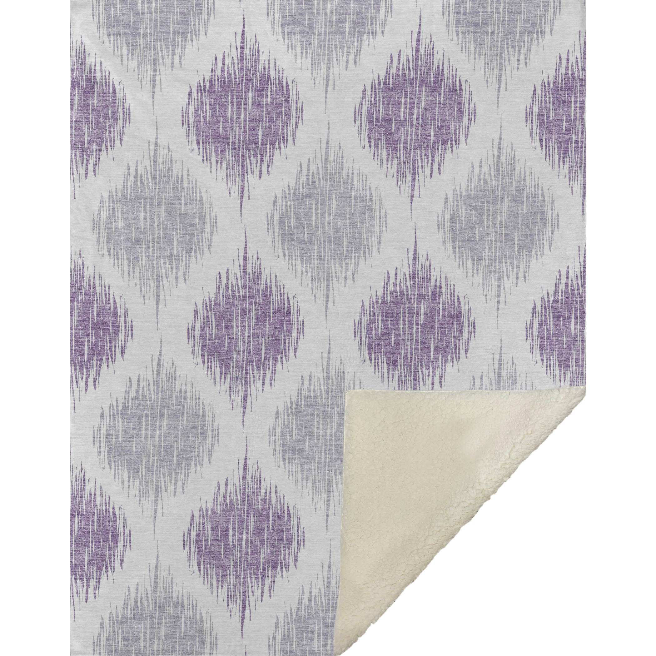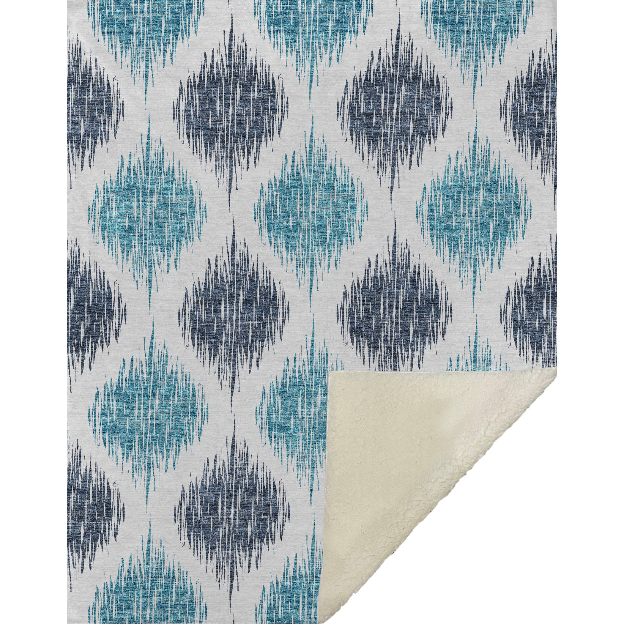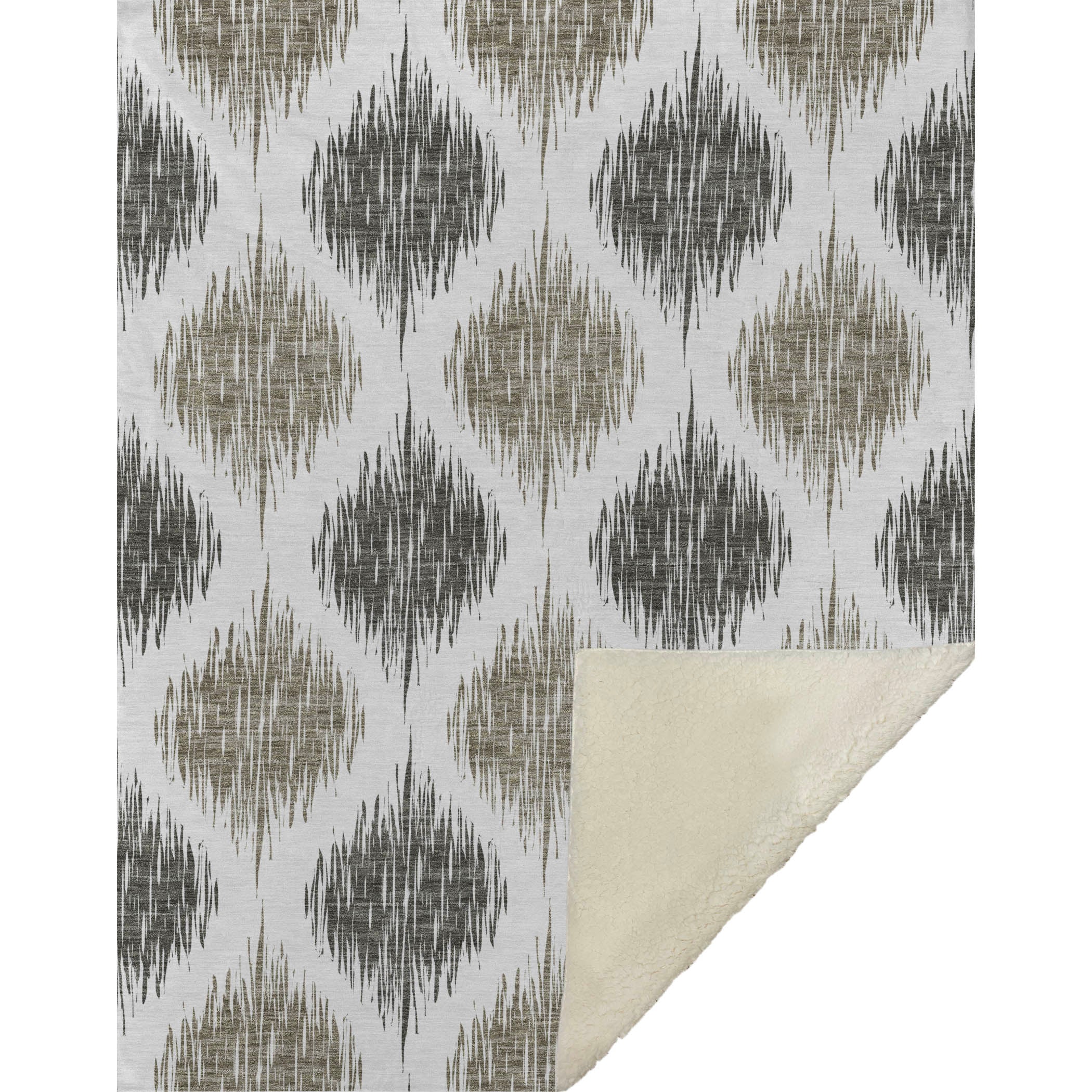 Experience the captivating charm of the blurred Ikat pattern, intricately crafting a lattice effect that injects visual intrigue into any space. Embrace the oversized 50" x 70" dimensions, featuring a luxuriously soft-touch front and a warm sherpa backing for ultimate comfort. Made with fade-resistant polyester microfiber, it suits indoor and covered outdoor settings, offering worry-free maintenance with its Premium Machine Washable design.