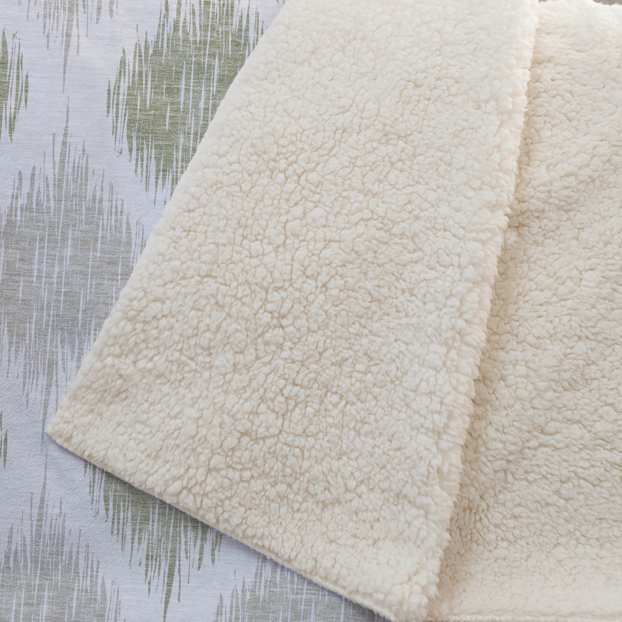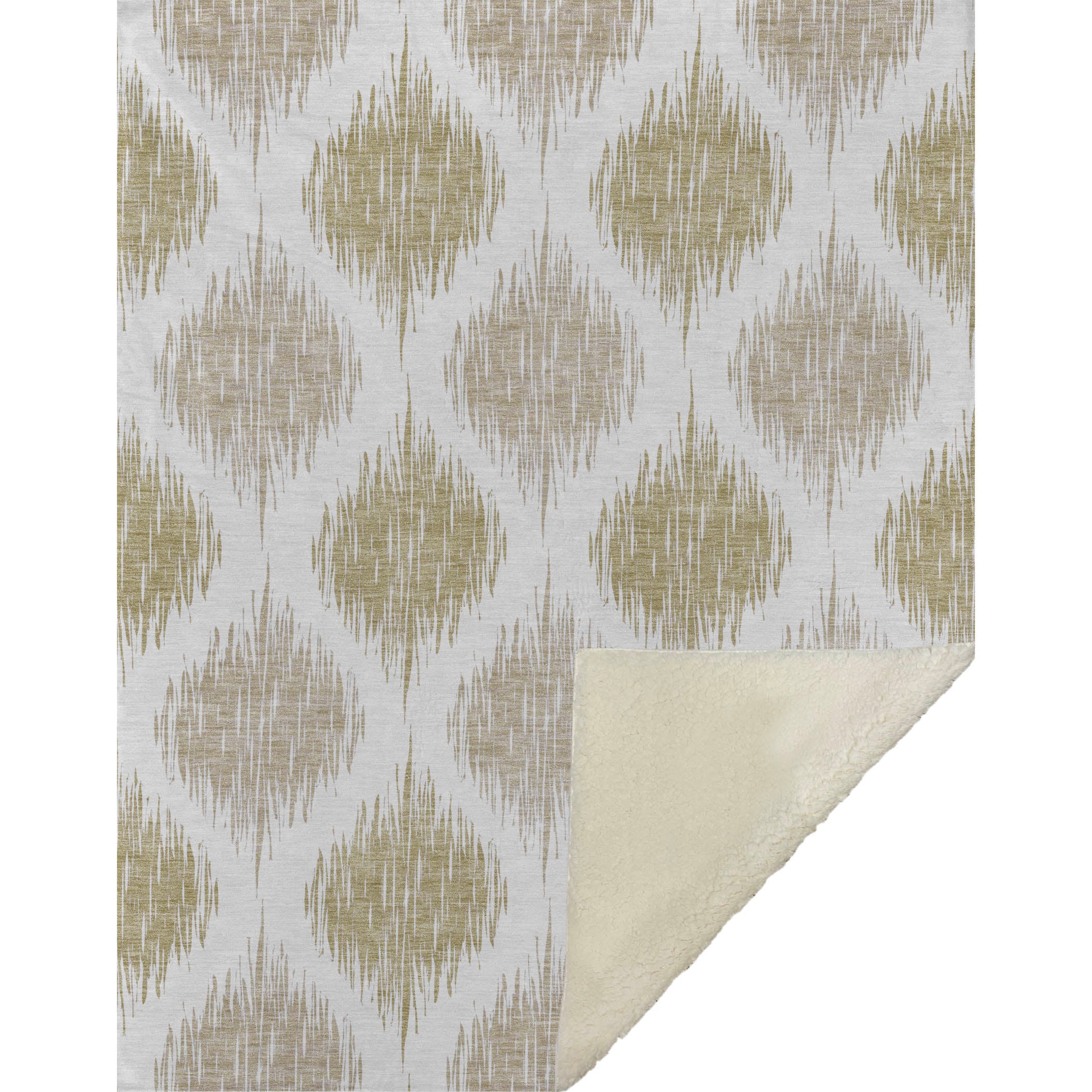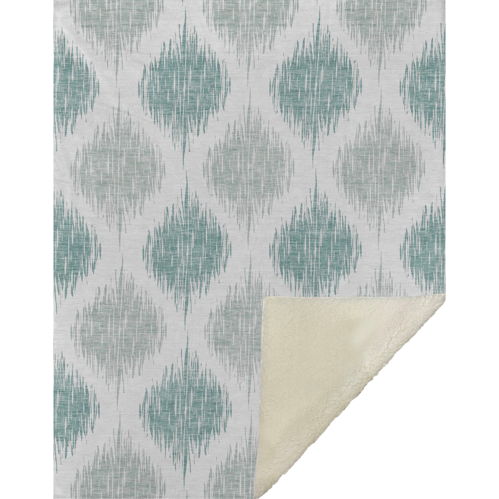 Experience the captivating charm of the blurred Ikat pattern, intricately crafting a lattice effect that injects visual intrigue into any space. Embrace the oversized 50" x 70" dimensions, featuring a luxuriously soft-touch front and a warm sherpa backing for ultimate comfort. Made with fade-resistant polyester microfiber, it suits indoor and covered outdoor settings, offering worry-free maintenance with its Premium Machine Washable design.
