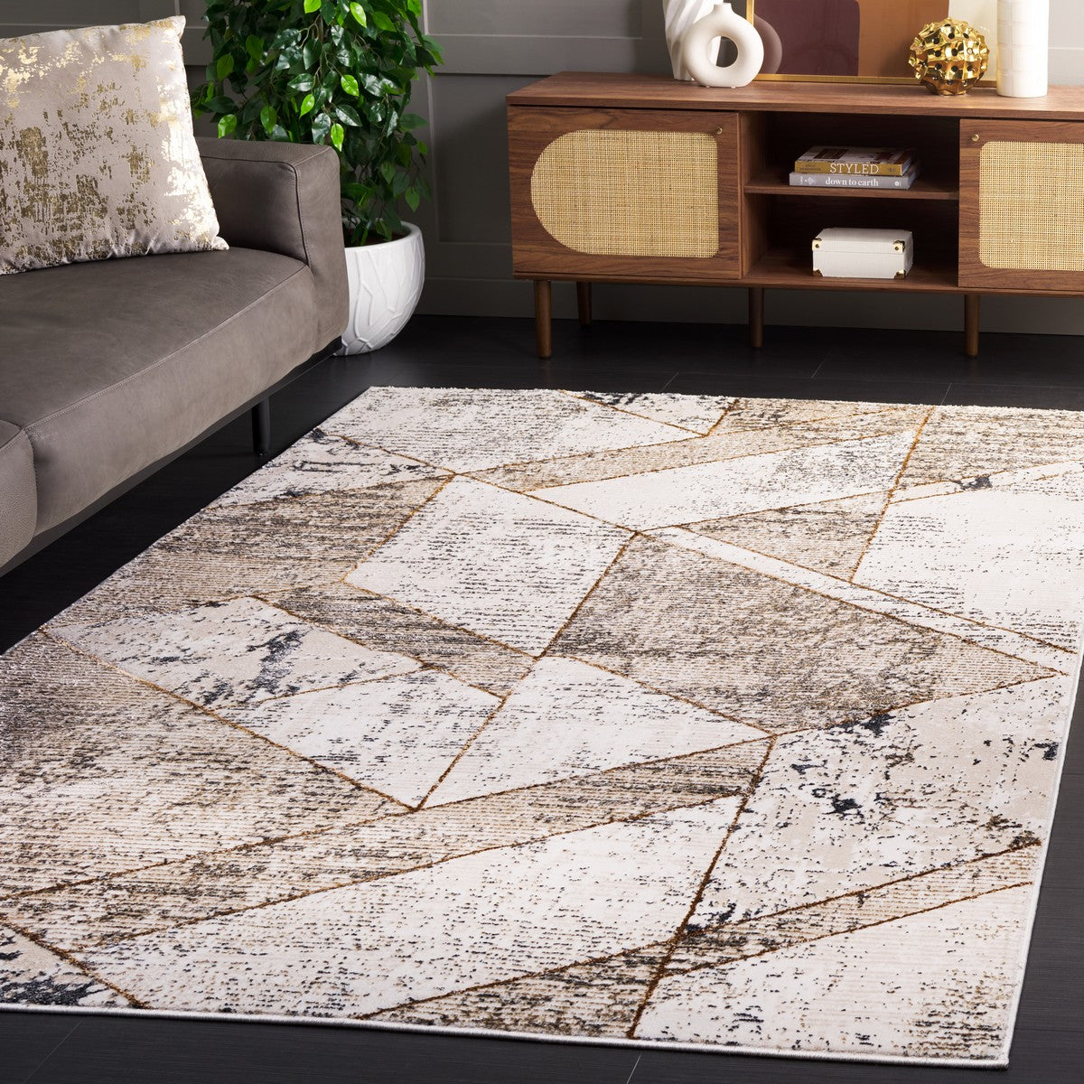Alenia ALN115B Beige Grey rug from the Alenia Rug Collection. This rug showcases dreamy natural contours and reimagined classics, making it the perfect choice to elevate your home decor. With its fascinating colors and patterns, this trendy floor covering effortlessly enhances any modern living space.