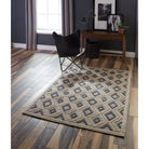 Andes And 2 Beige area rug collection, inspired by the American Southwest for a chic touch to your home decor. Featuring a soothing color palette of grey, beige, and blue, these modern rugs boast high-low pile for added texture and visual interest. The geometric patterns of diamonds and stripes are beautifully accentuated in each rug, creating a balanced and rustic design that suits various spaces.