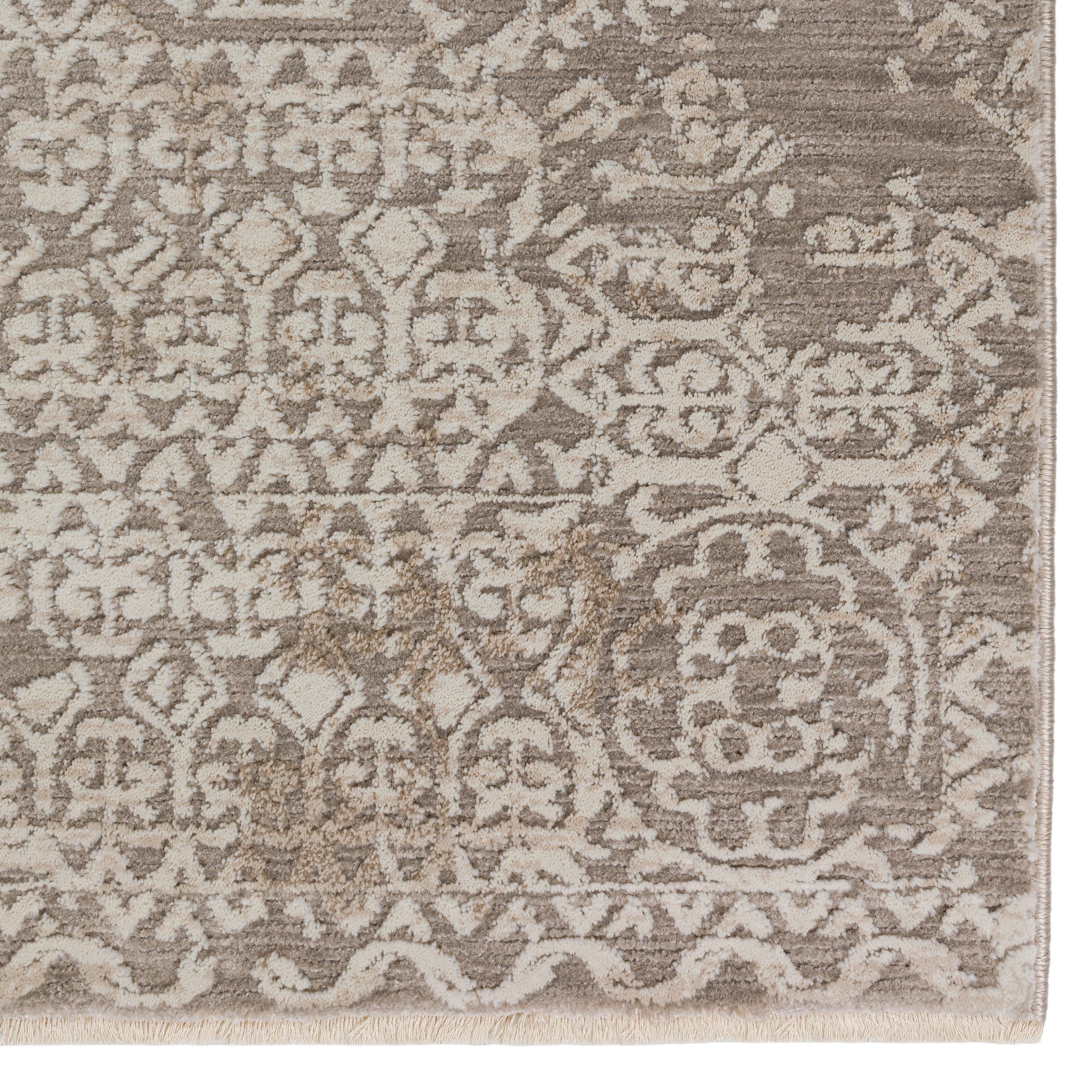 Antalya AY3 Silver area rug, a contemporary take on a timeless design. Crafted with a luxurious blend of polypropylene and polyester, this rug showcases intricate textures and features shrink yarn technology that adds depth to its appearance. The modern self-fringe detail enhances its elegant look, making it a versatile addition to any room in your home.