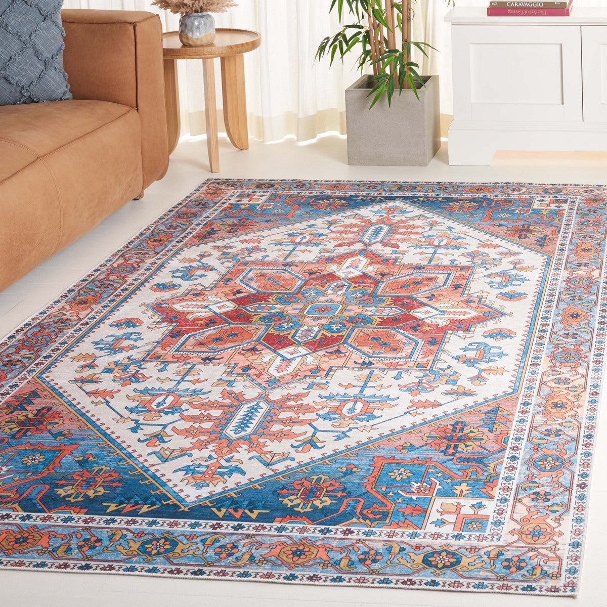 Elevate your living space with the Arizona ARZ120Q Rust Navy Washable Rug. This stunning rug combines high style with high performance, featuring classic motifs and an antique patina design. Perfect for busy areas, these versatile rugs add a touch of elegance to any room. The best part? They are machine washable, making cleaning a breeze. Crafted with soft synthetic yarns, these rugs offer unparalleled comfort underfoot.