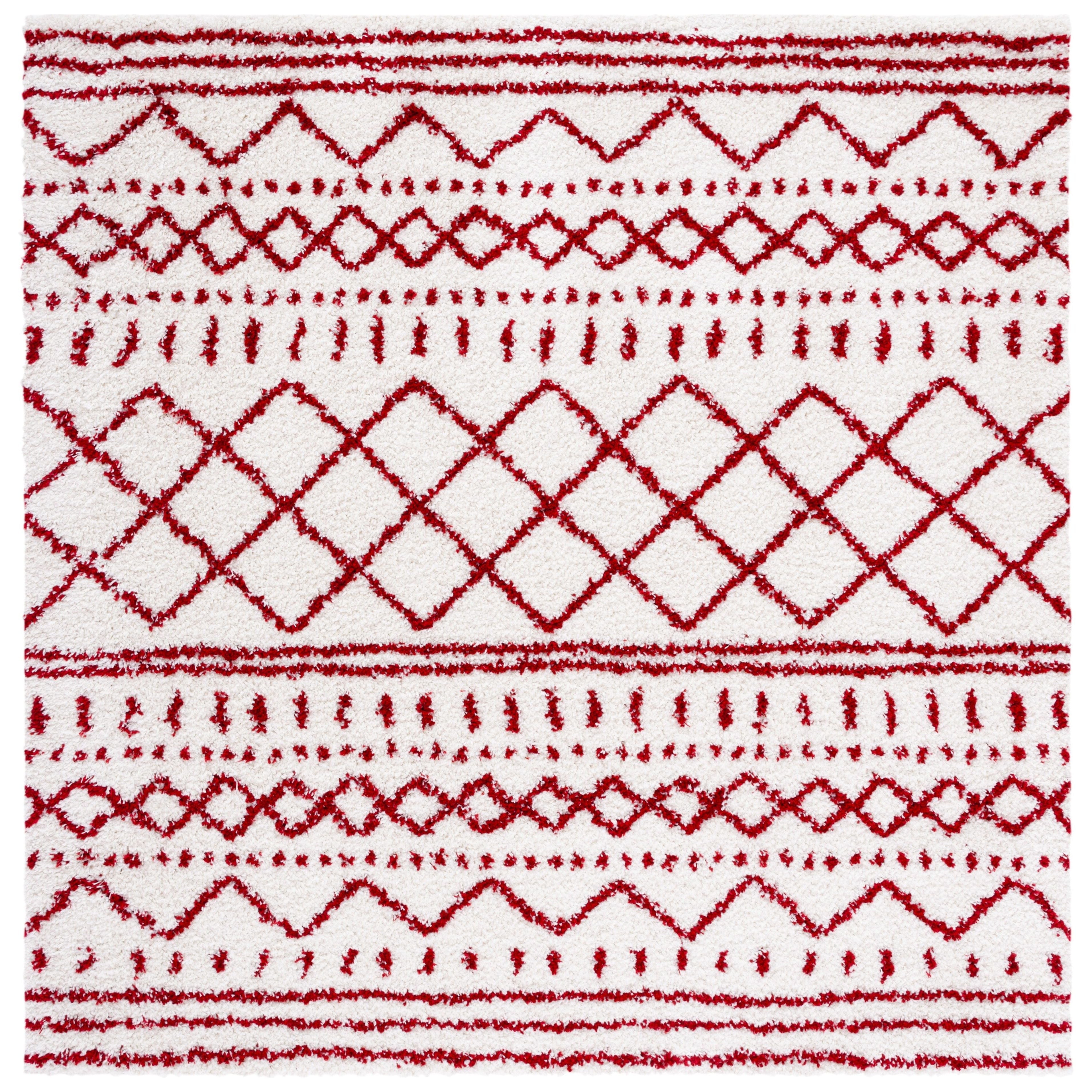 Arizona Shag ASG741P, a contemporary rug from SAFAVIEH's Arizona Shag Collection inspired by Southwestern motifs. Crafted with enhanced polypropylene fibers, these shag rugs are plush and fashionable, while also being virtually non-shedding for easy maintenance. With a woven backing providing a strong foundation, this rug is built to last. Measuring approximately 1.2 inches thick, it adds depth and coziness to any space.