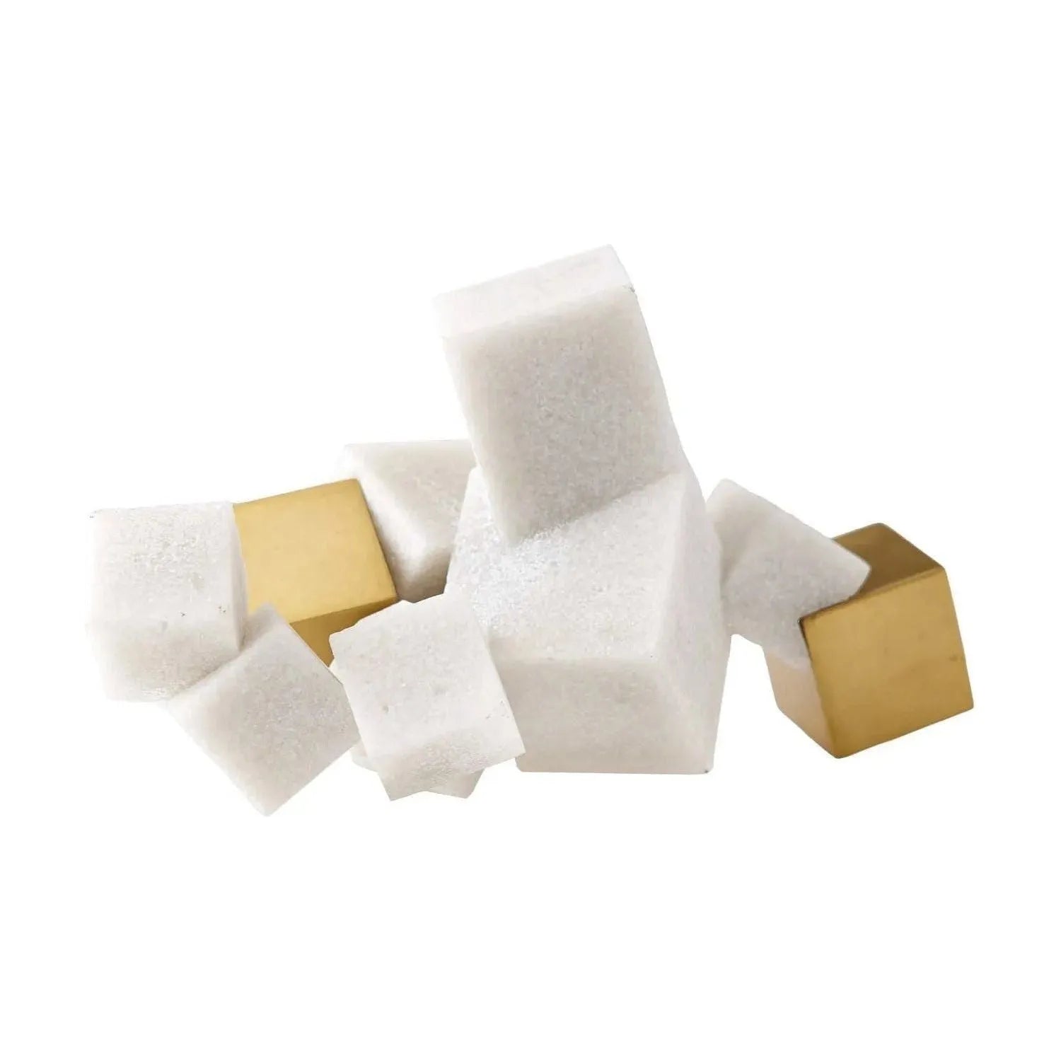 Nature'S Most Perfectly Formed Mineral, Pyrite, Informs The Design Of Our Venetian Sculpture. The Cubic Tabletop Art Object Mimics The Stunning Crystal Formations, In A Horizontal Collage Of Ricestone Composite And Antique Brass Finished Steel Blocks In Varying Sizes.