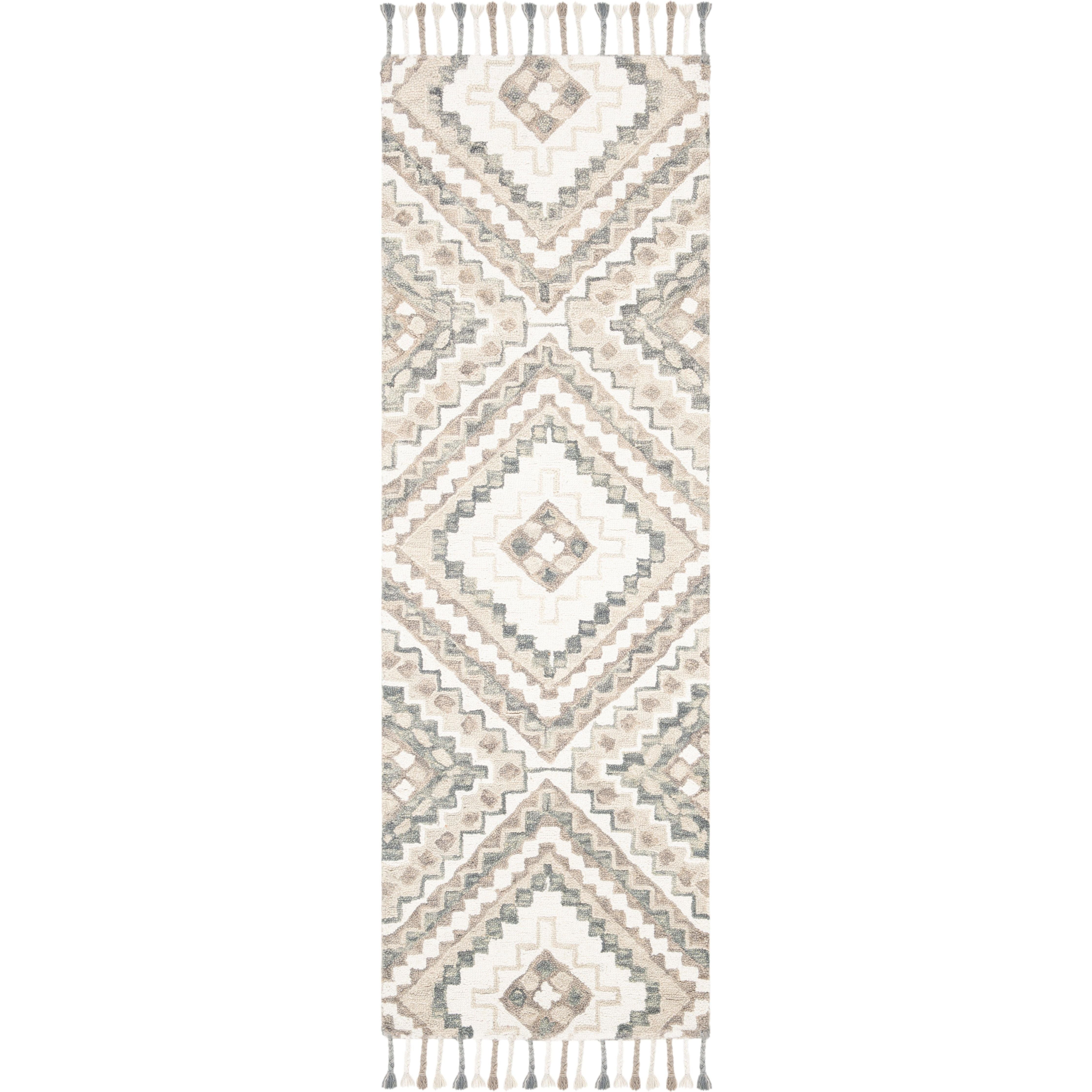 Aspen APN250E Taupe Ivory rug from the Aspen Collection, embodying the rustic-chic trend with tribal-art inspired designs and a serene color palette. Crafted from pure wool in a low loop pile, this collection offers both style and comfort underfoot, making it ideal for classy-casual home decor. The rug boasts an approximate thickness of 0.5 inches, adding a touch of luxury to any space.