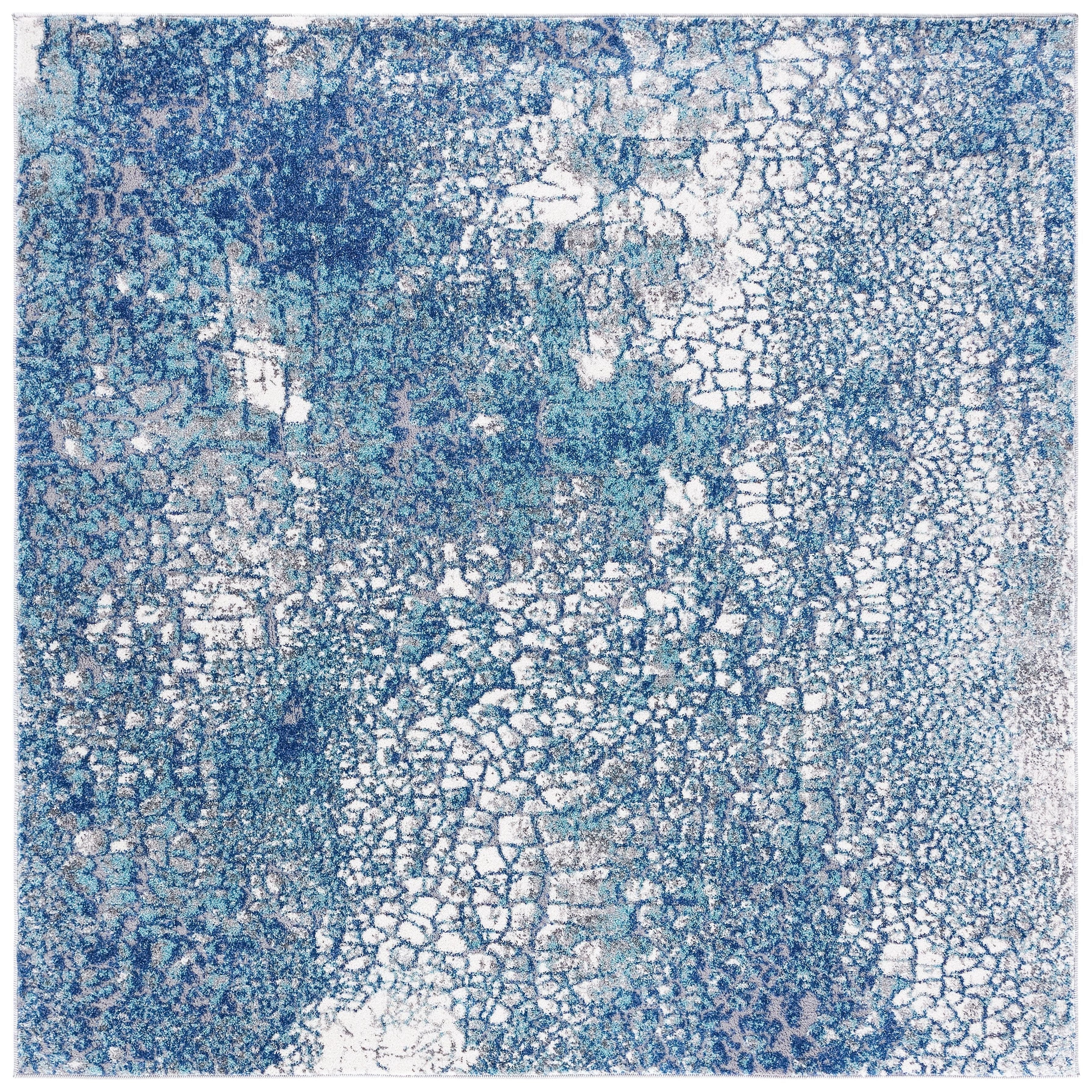 Elevate your living space with the Aston ASN706N area rug from the SAFAVIEH Aston Collection. Featuring captivating abstract patterns and cool tones, these modern rugs add a touch of contemporary chic to any room. Crafted with a textured cut pile and soft synthetic yarns, these machine-woven rugs offer both lasting beauty and comfort, with an approximate thickness of 0.43 inches.