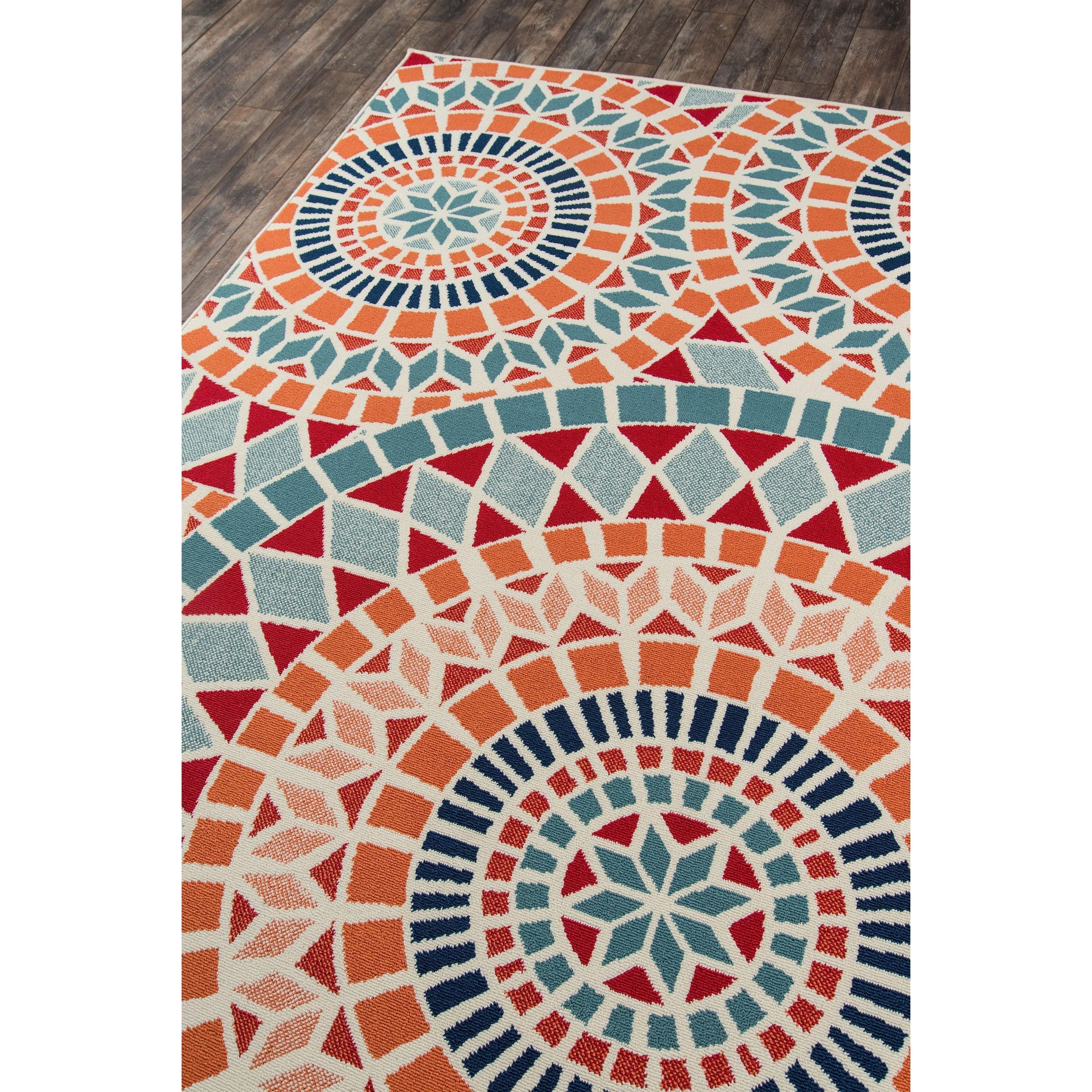 Baja BAJ24 Multi area rug, a versatile addition to your indoor or outdoor space. This all-weather rug features an elegant design with repeating stripes, diamonds, trellis, and nautical icons like ropes and anchors. Perfect for patios, porches, and pool decks, this rug adds a touch of luxury to any living space.