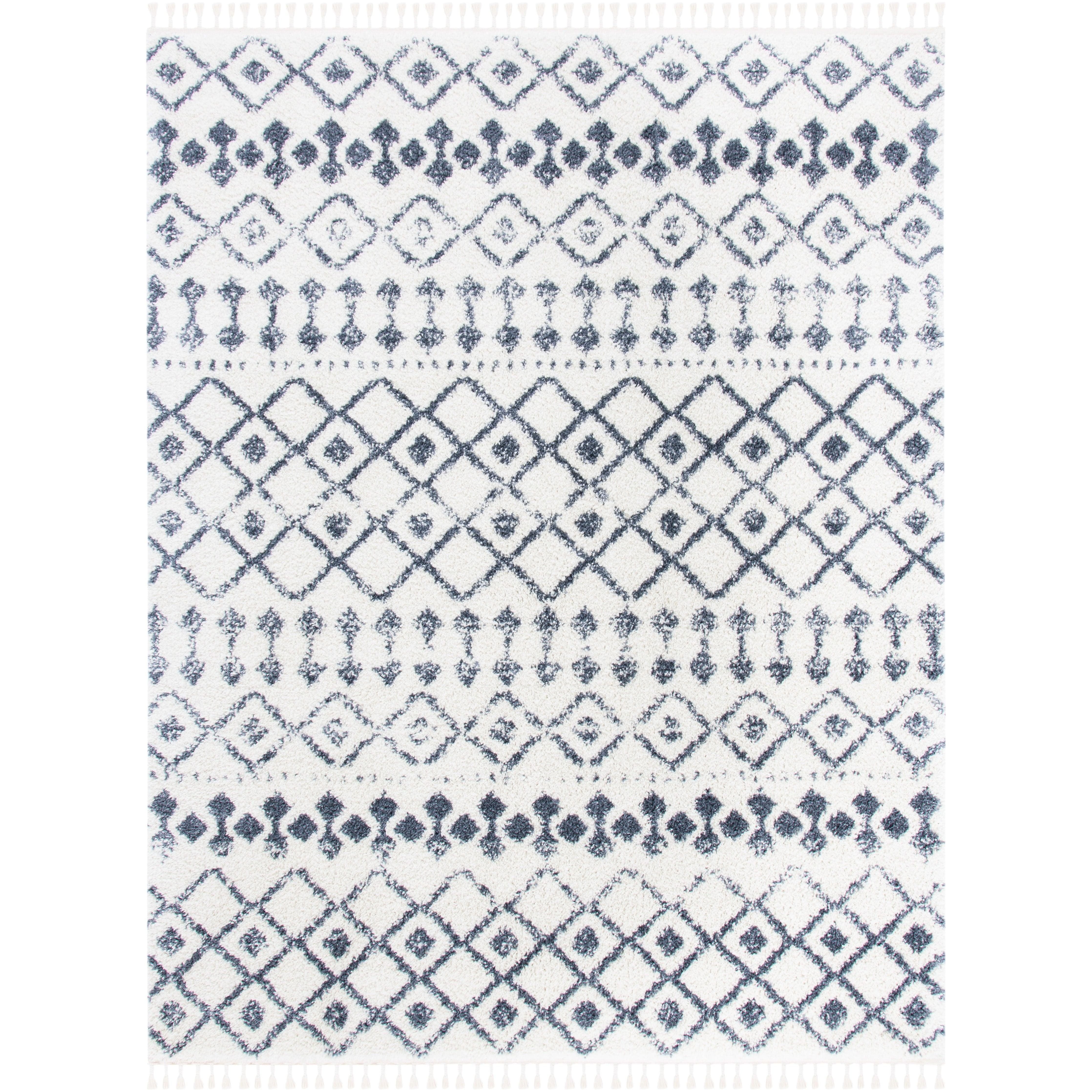 Elevate your space with the Berber Fringe Shag BFG516A Cream Dark Grey rug, inspired by the timeless designs of Morocco. This modern take on a classic style features distinctive fringe detailing and a trellis pattern, all crafted with easy-care fibers to minimize shedding. With an approximate thickness of 1.2 inches, this rug adds both comfort and style to any room.