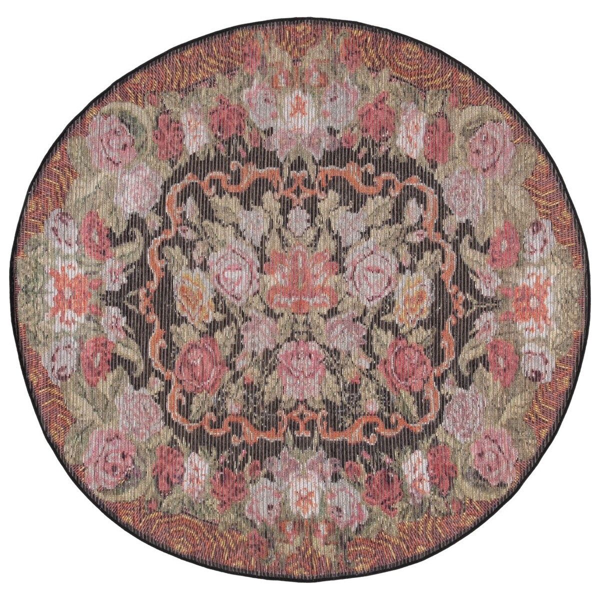 luxurious Besarabian BES220Y Black Sage Rust rug, a stunning piece that draws inspiration from the vibrant culture of Eastern Europe. Adorned with intricate floral patterns in vivid hues, this rug effortlessly elevates the aesthetic of any space. Crafted through power looming techniques, it is made from a blend of cotton, jute, and chenille for a soft and comfortable feel underfoot.