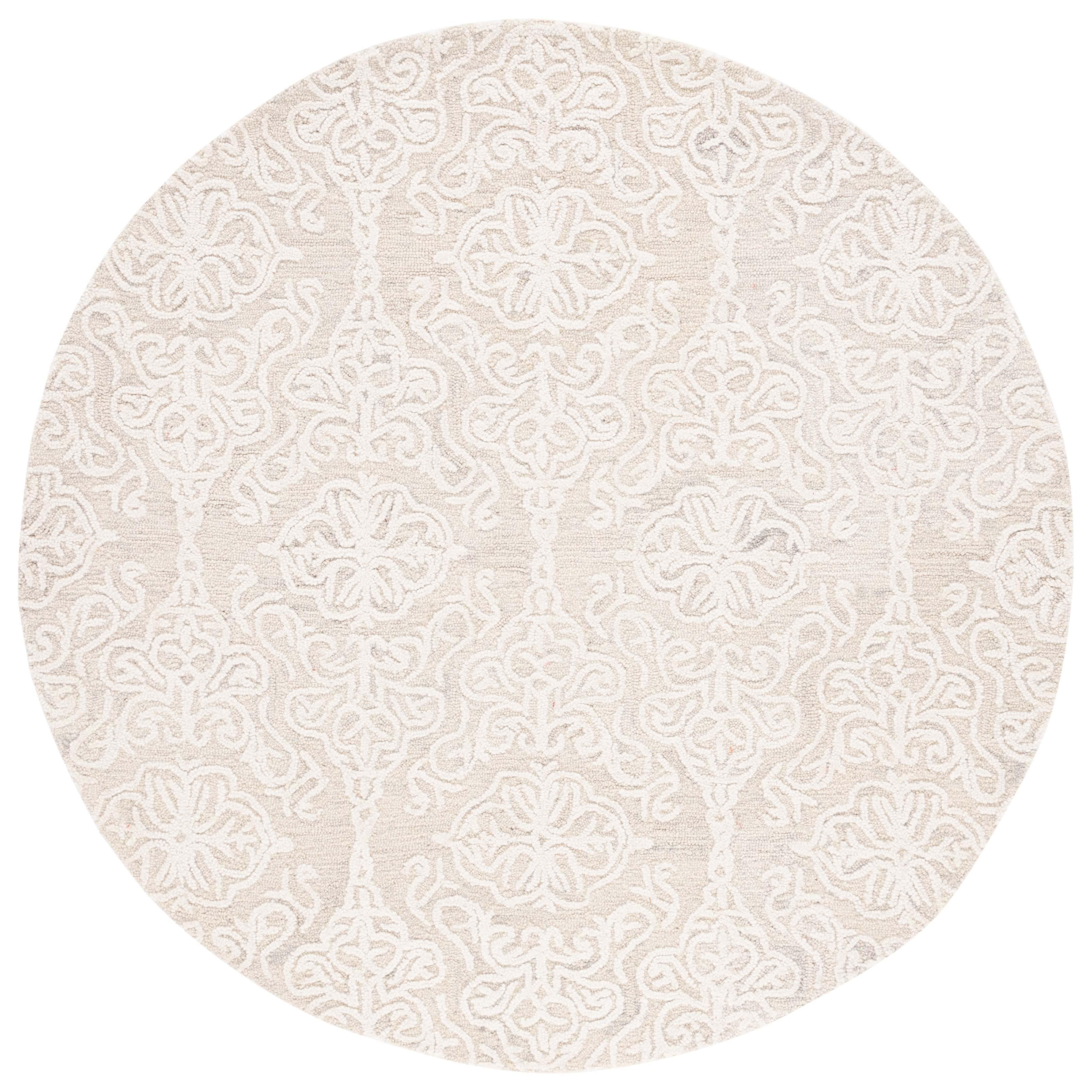Blossom BLM112G Silver Ivory rug, a vibrant and modern twist on classic hooked rugs. Crafted with large hand-woven loops, the texture of the Blossom Collection brings a fresh look to country casual interiors. Made from 100% premium wool, these rugs seamlessly blend traditional English chintz and block print motifs with contemporary home decor styles. With an approximate thickness of 0.5 inches, this rug adds both comfort and style to any room.