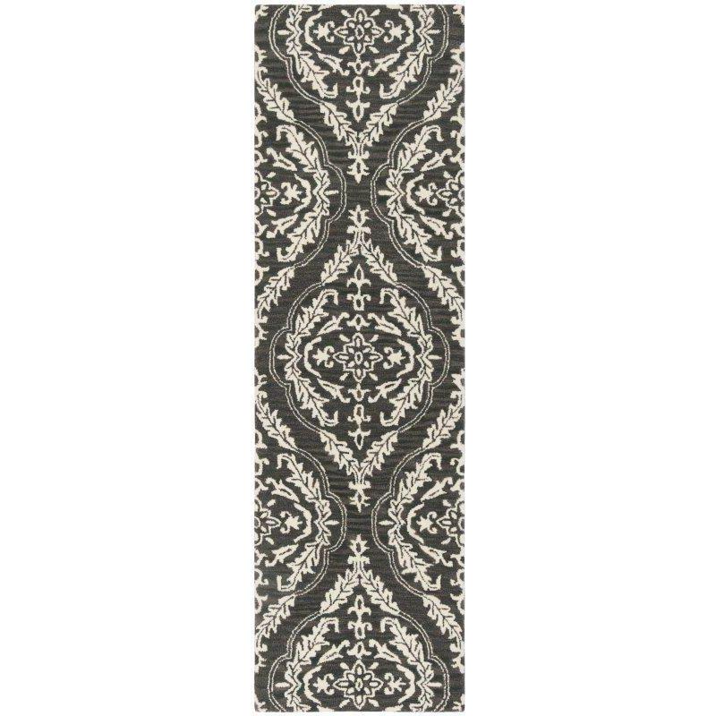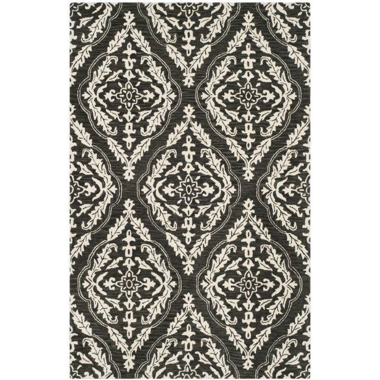 Blossom BLM602H Charcoal Ivory rug from Safavieh's exquisite collection. Inspired by nature, this rug showcases modern floral patterns that add a touch of elegance to any room. Handmade from 100% premium wool, each piece is crafted with precision using modern hand-tufting techniques for enhanced durability.