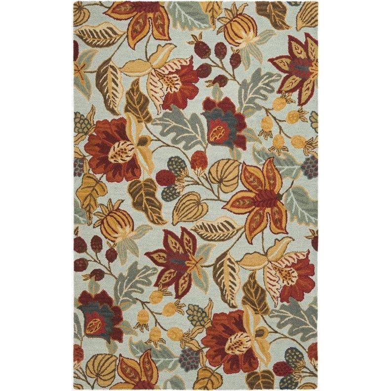 exquisite Blossom BLM863A rug, featuring a luxurious 100% pure virgin wool pile that is skillfully hand-hooked to showcase stunning floral designs in subtle neutral tones. Each piece in this collection is meticulously handmade in India, crafted with the utmost attention to detail exclusively for Safavieh.