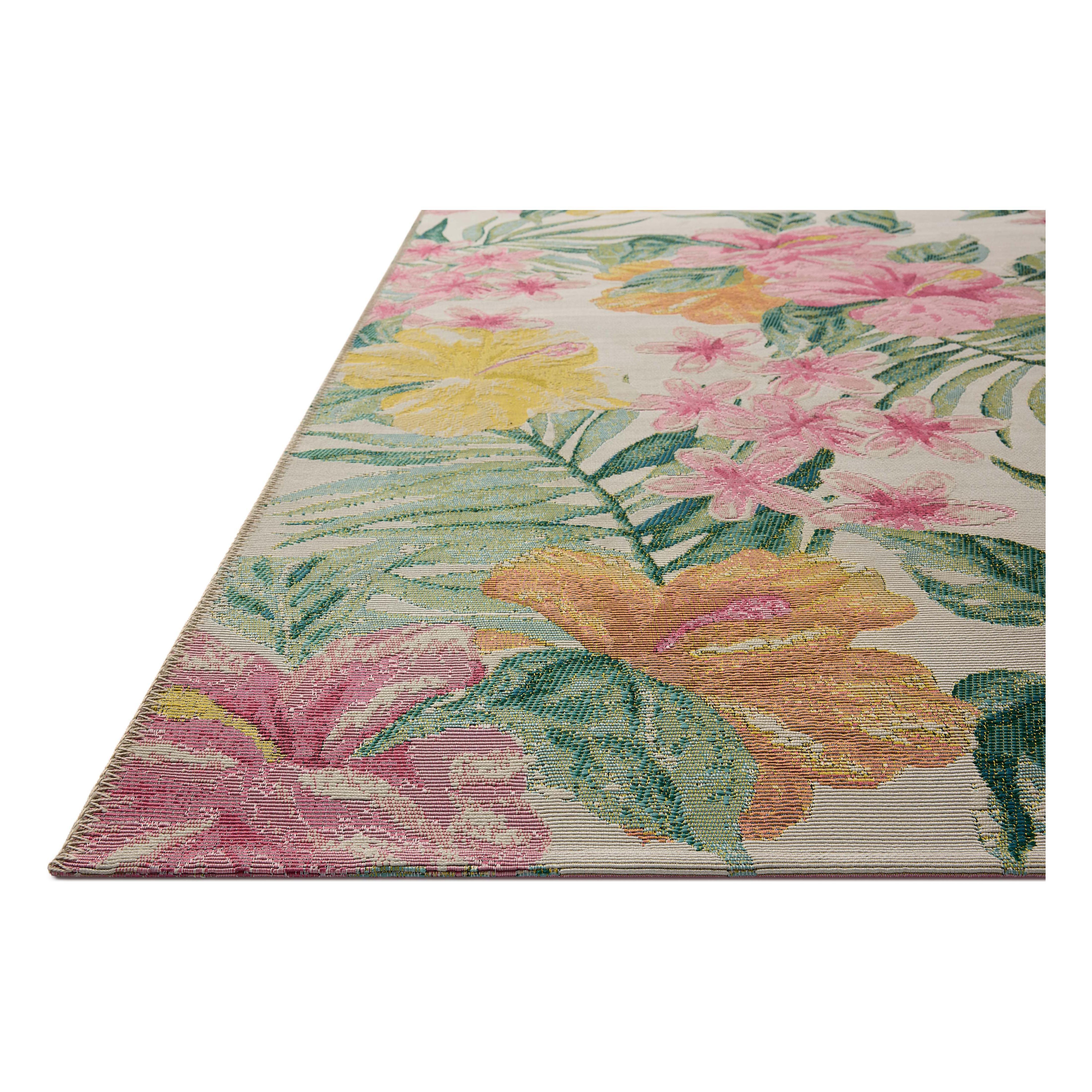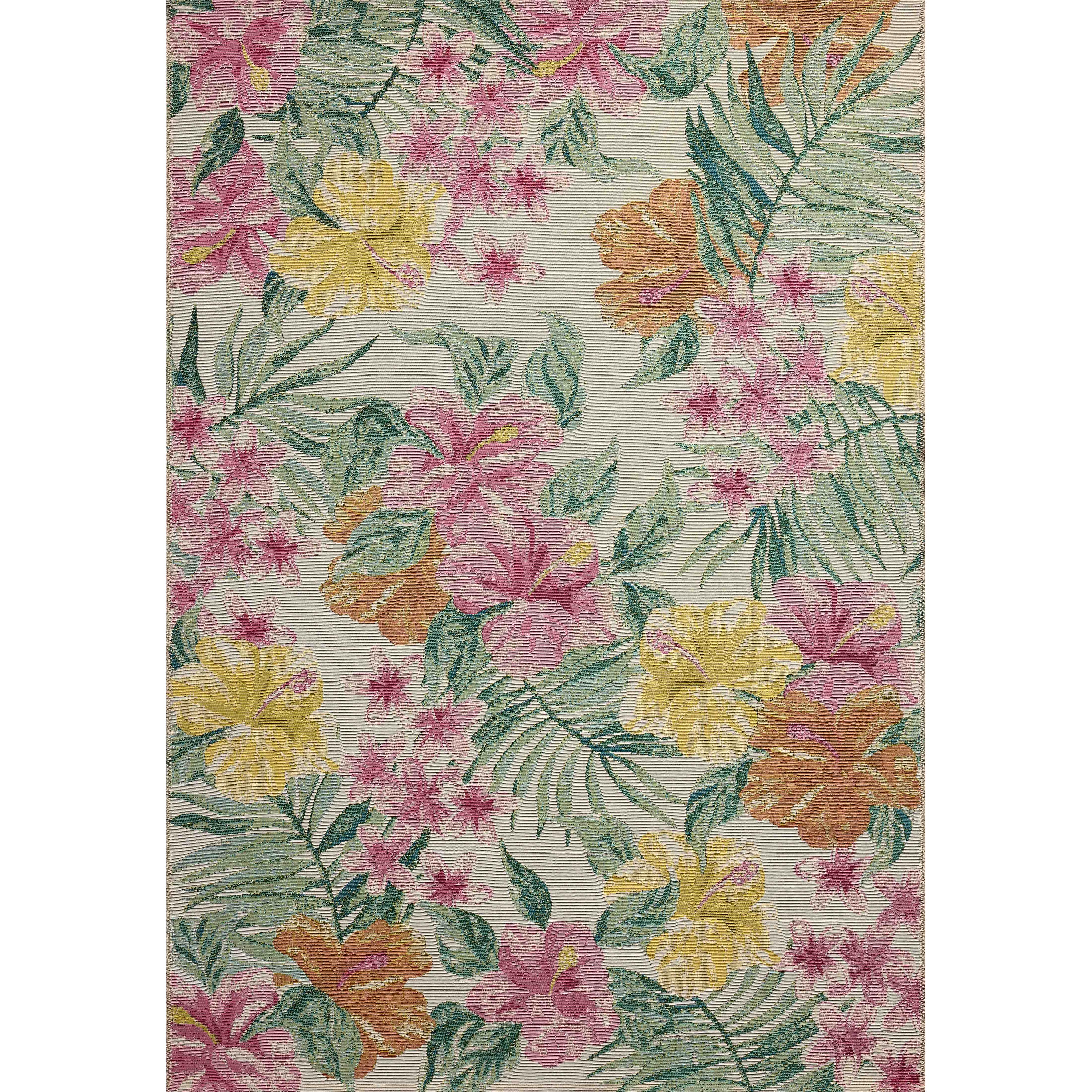 Romantic and maximalist, the Botanical Collection goes all-in on large-scale flowers with a poppy, vintage fabric style. These power-loomed area rugs are made of mixed materials in Egypt for both indoor and outdoor use, where all they need is a rinse with a hose to clean when needed.