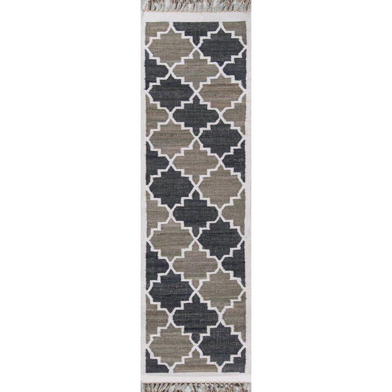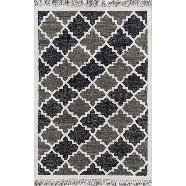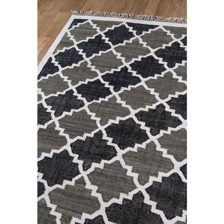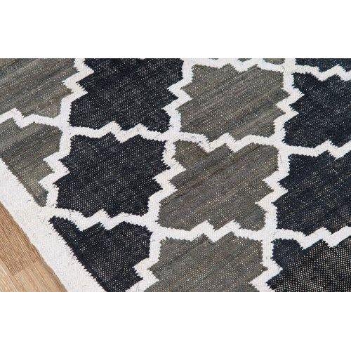 California Cal 1 Charcoal rug, embodying a laid-back West Coast aesthetic that will elevate any room. Inspired by tribal motifs, this collection features graphic designs with repeating geometric patterns that create a vibrant and unique look. Each rug is meticulously hand-woven using soft cotton fibers, ensuring a comfortable and casual feel underfoot. The colorful field of the rugs is adorned with windowpanes, arabesques, and bold concentric diamonds for an eye-catching appeal. Bring a touch of California cool into your space with the California Cal 1 Charcoal rug collection.