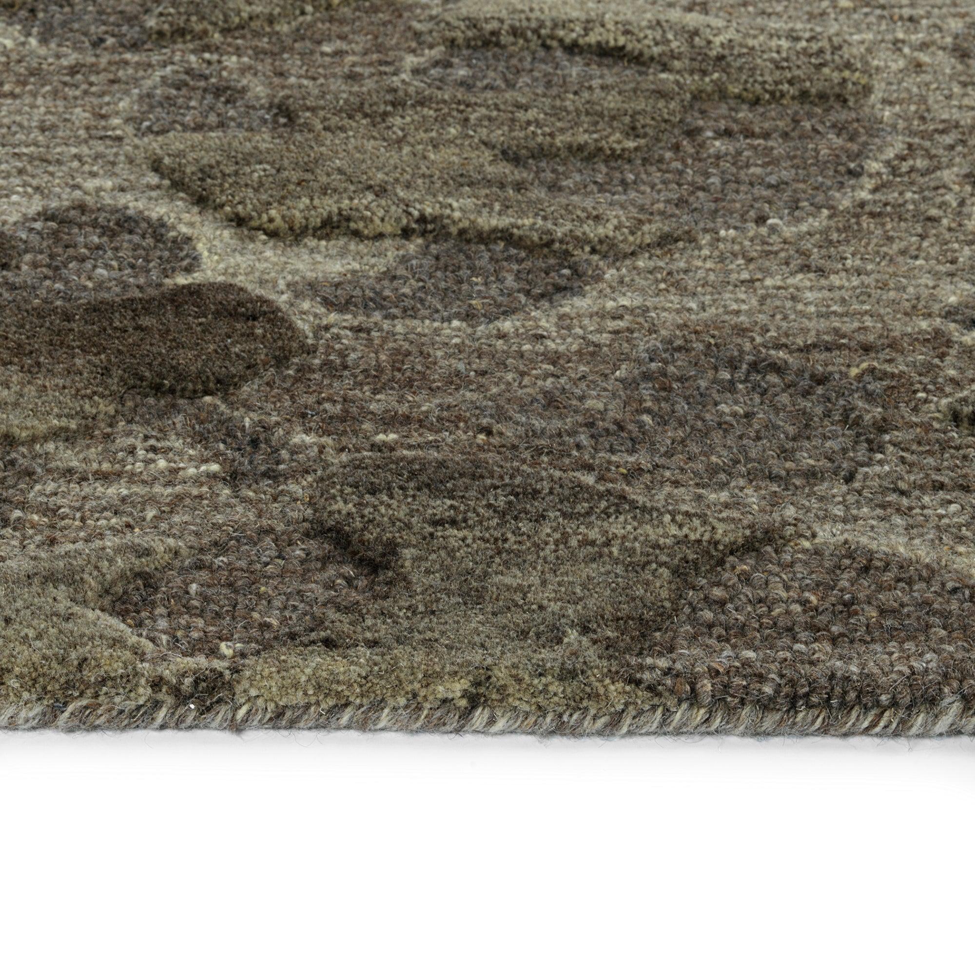 Calvin CLV99 107 Mushroom, a captivating addition to the Calvin Collection. The design of these rugs is inspired by the smooth shapes of stones eroded by a fast-moving stream over time, giving them an anthropomorphic quality. Crafted from 100% hand-spun wool and dyed with natural colors, each piece features a unique color palette.