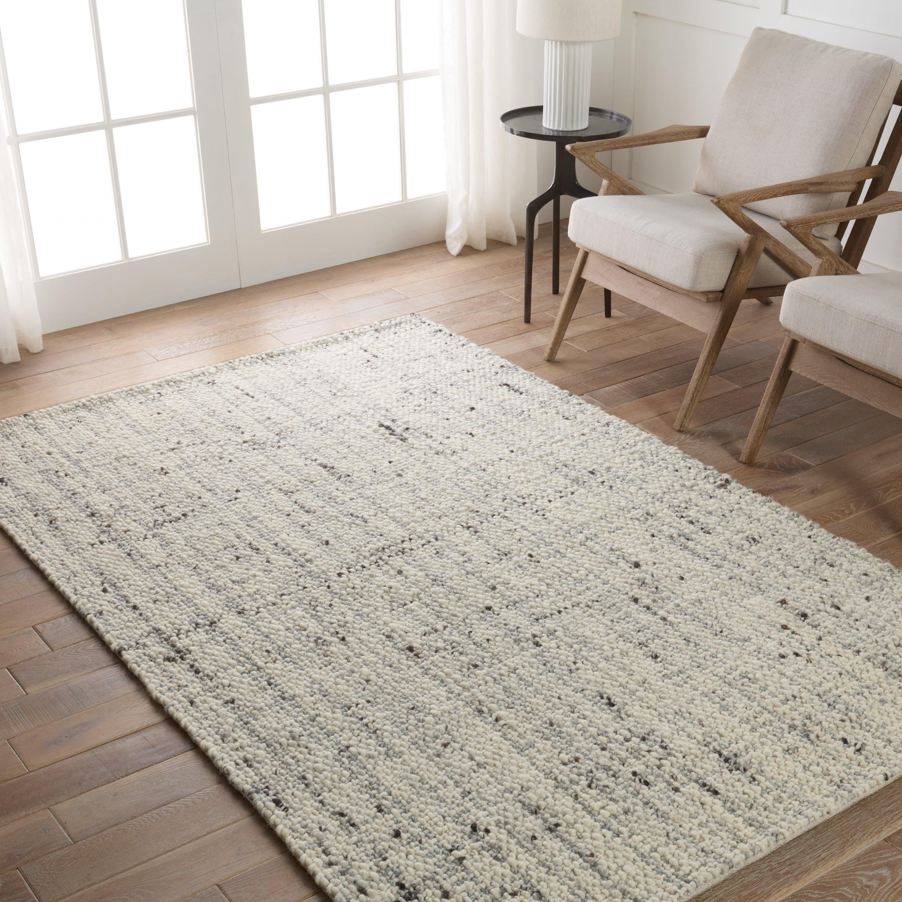 The Cambridge collection combines the versatility and texture of a tweed design with the retro statement of mid-century modern style. The hand-woven wool Season rug delivers an inviting and classic look to on-trend interiors with a neutral cream and light gray colorway. The 100% cotton backing provides additional comfort underfoot and extra support. This chunky-weave area rug perfects low traffic spaces of the home such as bedrooms and formal dining spaces.